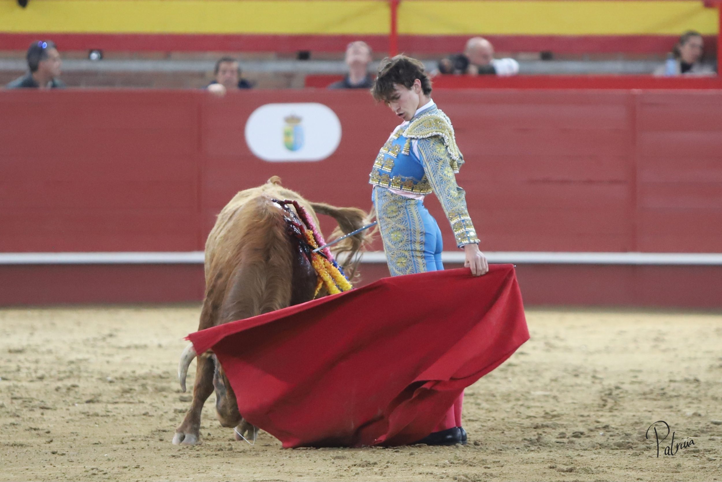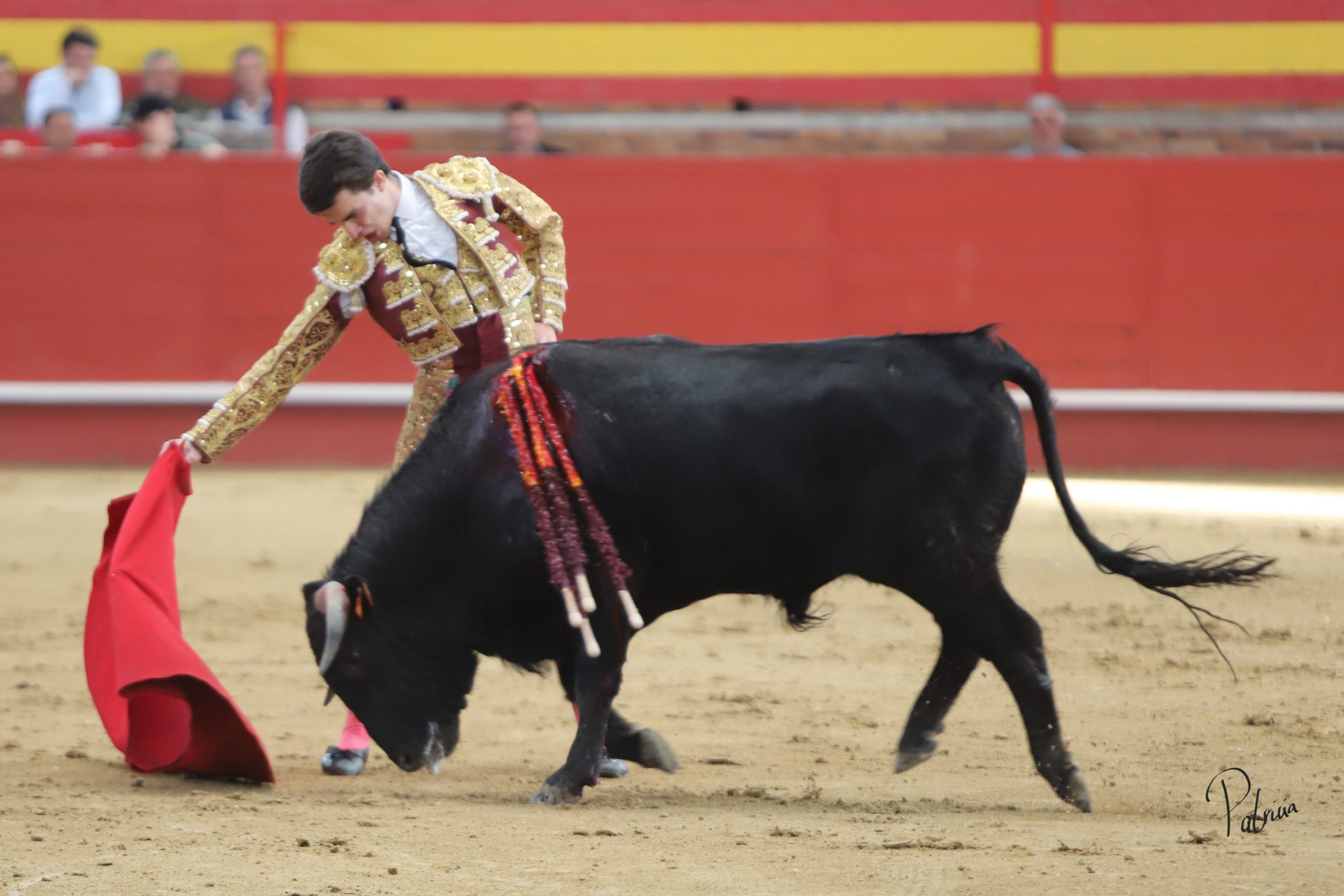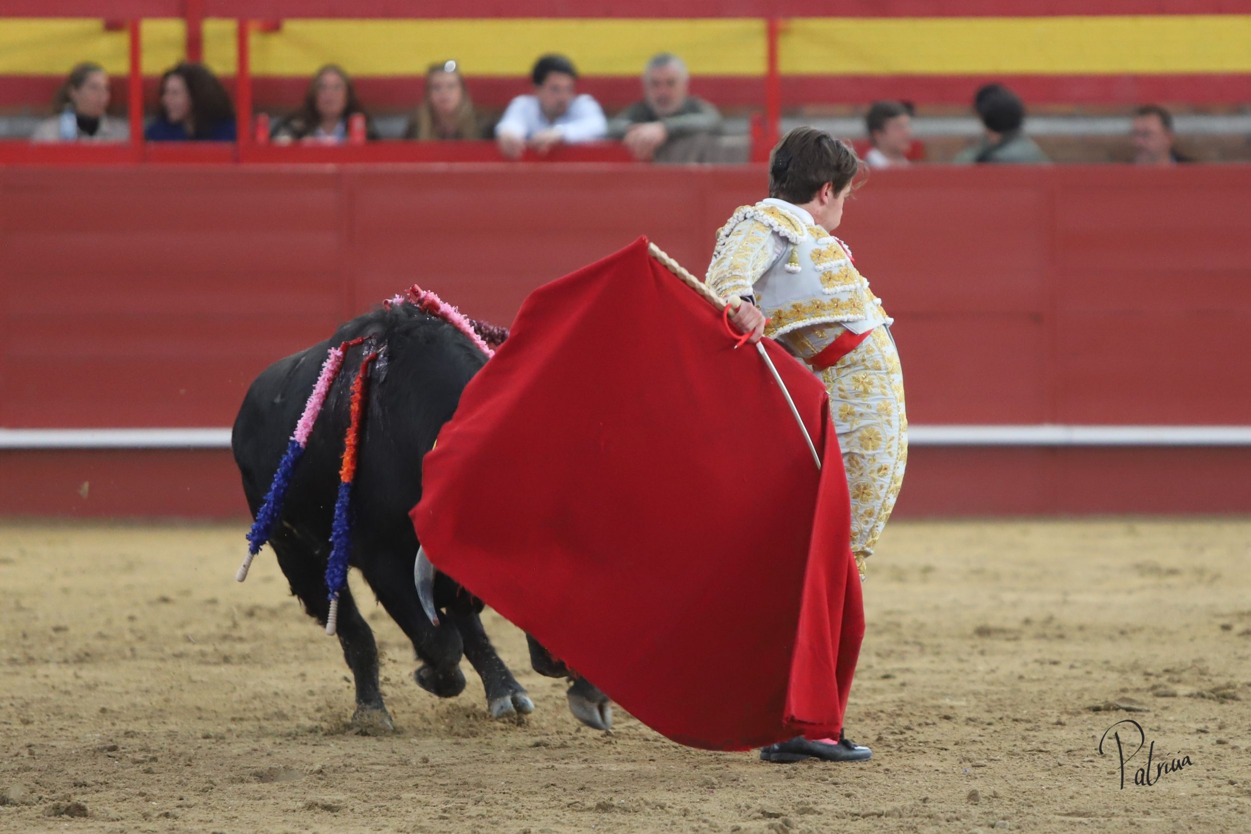 Israel Guirao paró a «Porcelano» de Guerrero y Carpintero con una larga cambiada para después pasarlo con una brega llevada. Segura intentó lucirse con su quite con más ganas que opciones. En los medios, sin probaturas, inició su faena de muleta con un pase cambiado por la espalda. Siguió sobre el pitón derecho cerrando la tanda con un cambio de mano. Siguió por el derecho toreando en redondo a un animal de extraordinarias condiciones, aunque medido de fuerza. Cambió al natural y le perdía pasos hasta lograr girar sobre sí mismo. Se iba viniendo algo más corto, por lo que buscó recursos de su tauromaquia para poner al respetable en pie. Alternó pitones dándole el pecho y tirando de el en cada pase entre aplausos. Se lució por el derecho, pasándolo en su muleta sin moverse ni un ápice. Deleitó con unas luquesinas para cerrar su labor de muleta. Hizo su epílogo por bernardinas y un cierre explosivo que puso al tendido de acuerdo. Lo mató de una fulminante estocada.