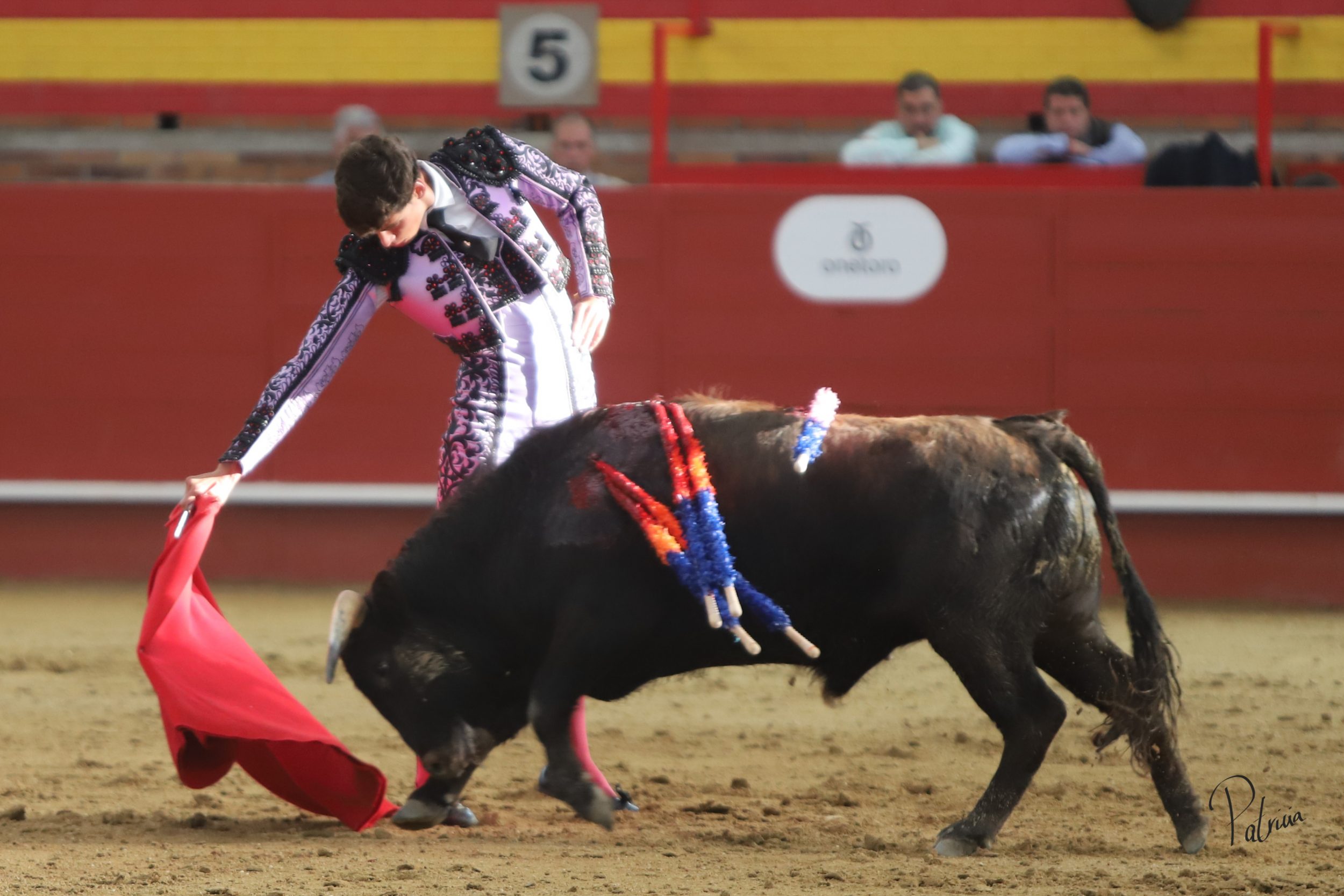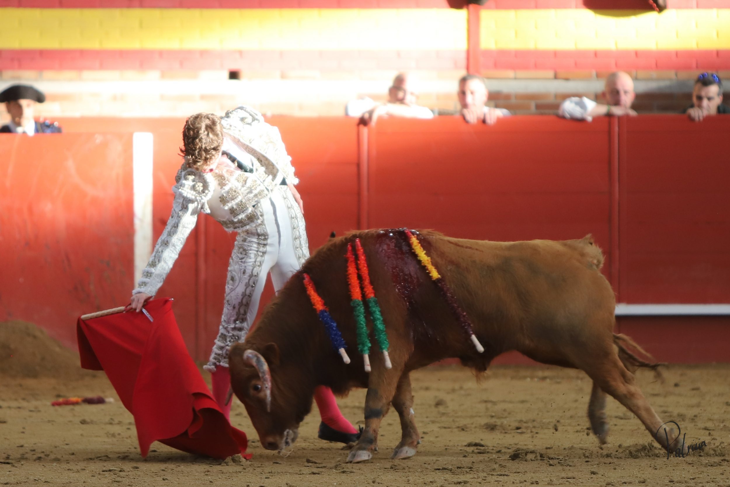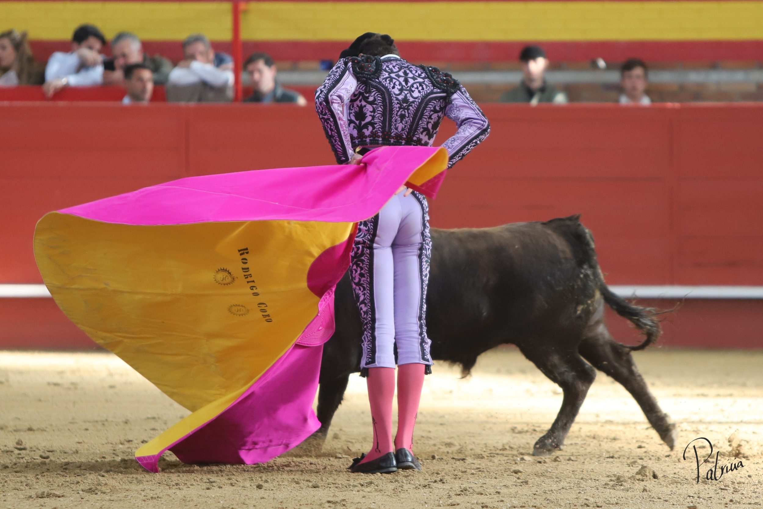 “Español» de Guerrero y Carpintero salió disperso y a Rodrigo Cobo le costó encelarlo en su capote. A pesar de ello, logró pararlo y estirarse con el a la verónica, cerrando con una lucida media. Guirao intentó lucirse en su turno de quite, que tuvo su respectiva réplica por parte de Cobo por delantales. Comenzó la faena de muleta en los medios, citándolo de lejos y sin probaturas se dispuso a torear sobre el pitón derecho. El animal se venía de lejos, así que aprovechó las buenas condiciones de su adversario para hacer faena. Cambió al natural le dio sitio y aprovechando la inercia y girando sobre sí mismo desarrolló una tanda en redondo con sabor. Le llevó a media altura, sin obligar a un animal que seguía el engaño. Cambió al pitón derecho, le bajó la mano y le toreó con gusto, enroscándose con el. Retomó el izquierdo y tras una atropellada tanda dejó una reconocida en el tendido. Mató con acierto.