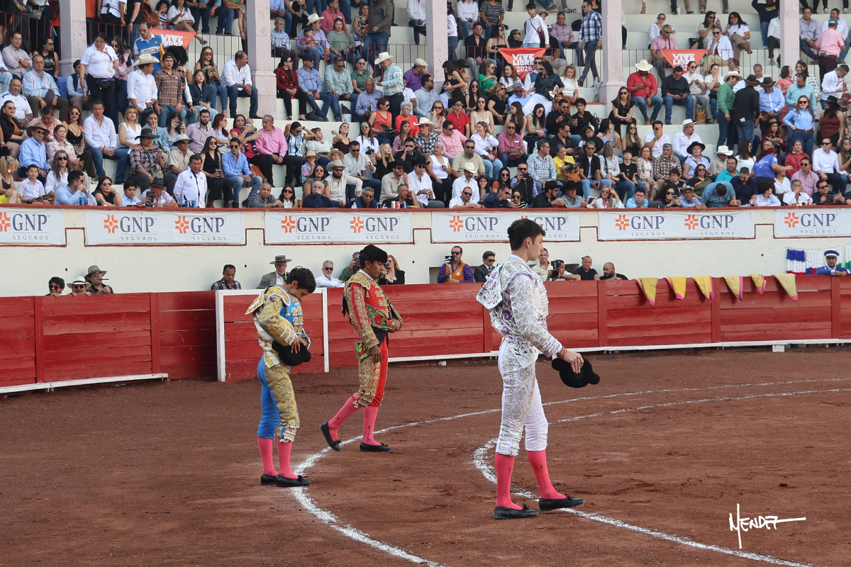 GANADO: Seis débiles novillos de Toros de Santillán y evidenciando sosería en general, siendo bueno el sexto, que mereció el arrastre lento. El quinto también se dejó. Regulares en su juego fueron el primero y el cuarto. Y deslucidos resultaron el segundo y el tercero.