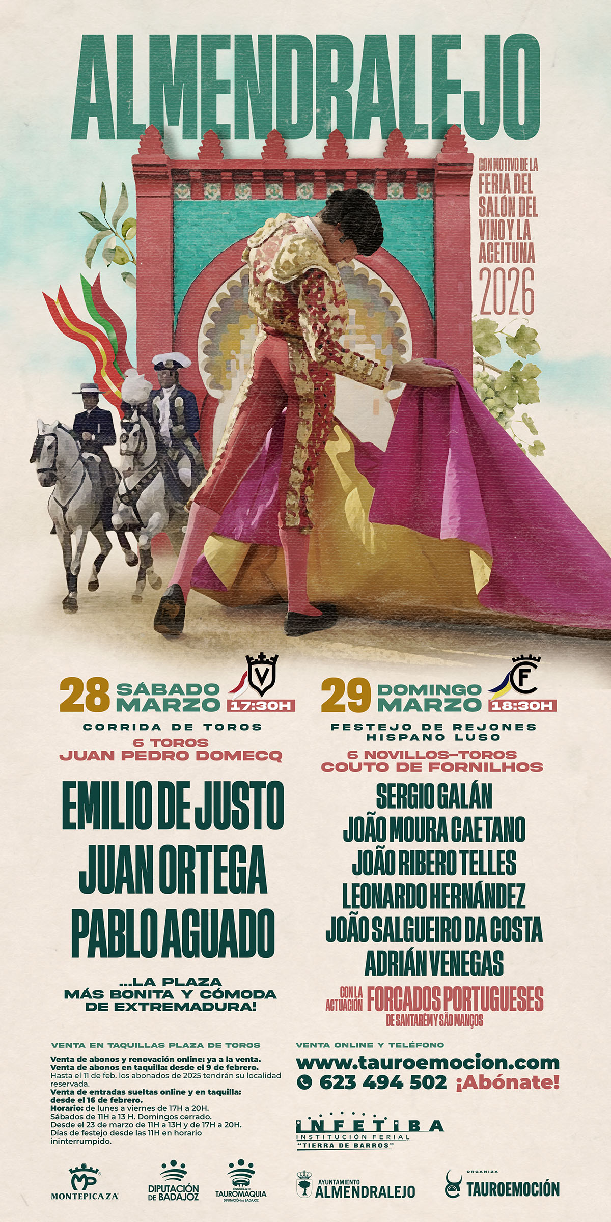 La corrida se enmarca en un fin de semana que completa el festejo de rejones hispano – luso el 29 de marzo con reses de Couto de Fornilhos: Sergio Galán, Joao Moura Caetano, Joao Ribeiro Télles, Leonardo Hernández, Joao Salgueiro Dacosta, Adrián Venegas y los forcados portugueses.