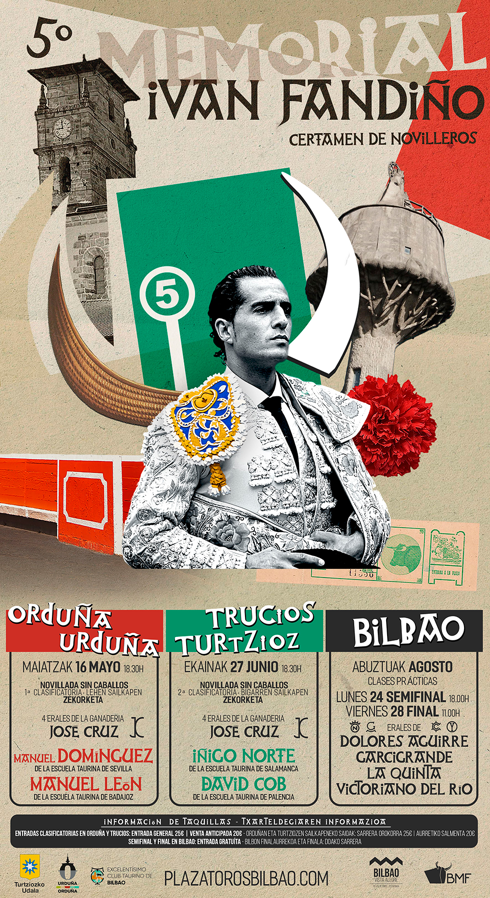 El V Memorial Iván Fandiño arrancará con dos festejos clasificatorios que servirán de primera oportunidad para los novilleros participantes. La primera clasificatoria tendrá lugar el 16 de mayo a las 18:30 horas en Orduña, con erales de José Cruz, para: