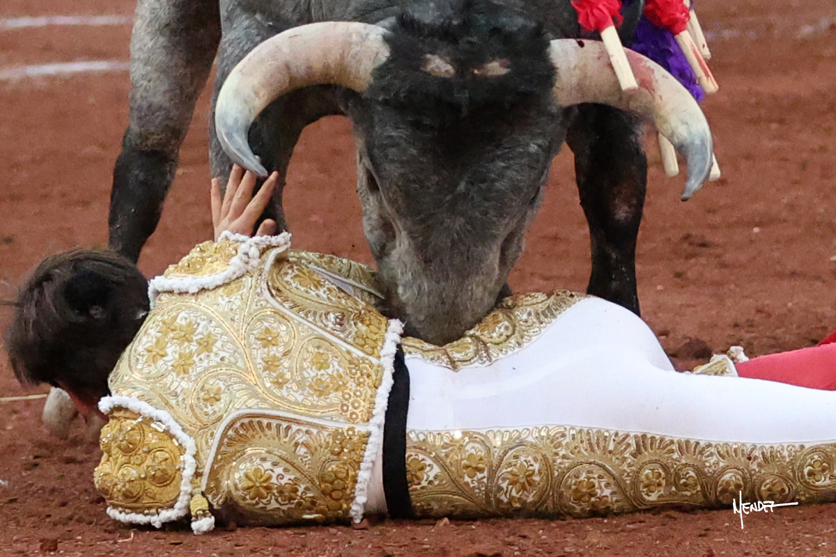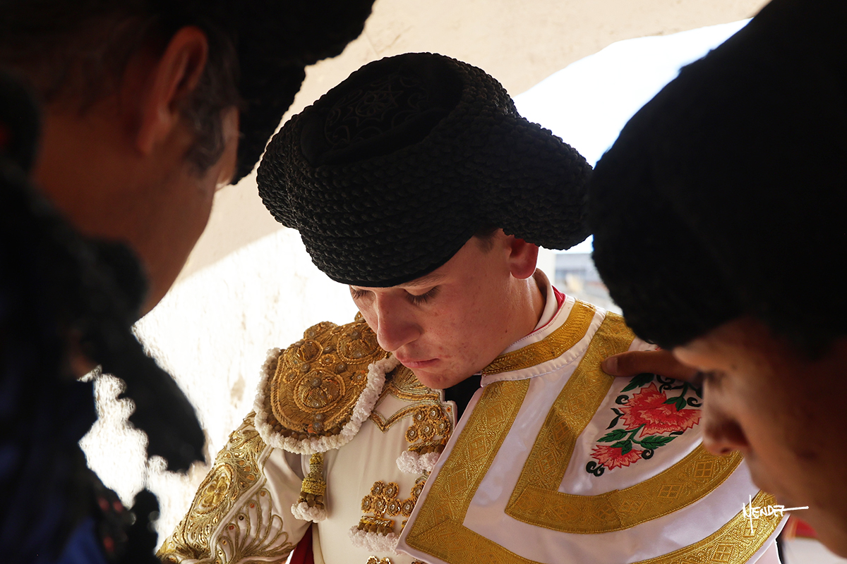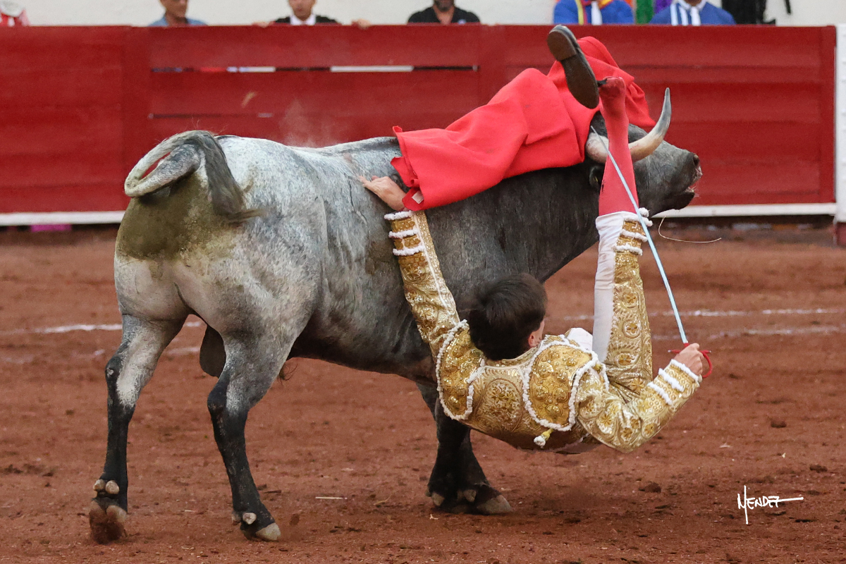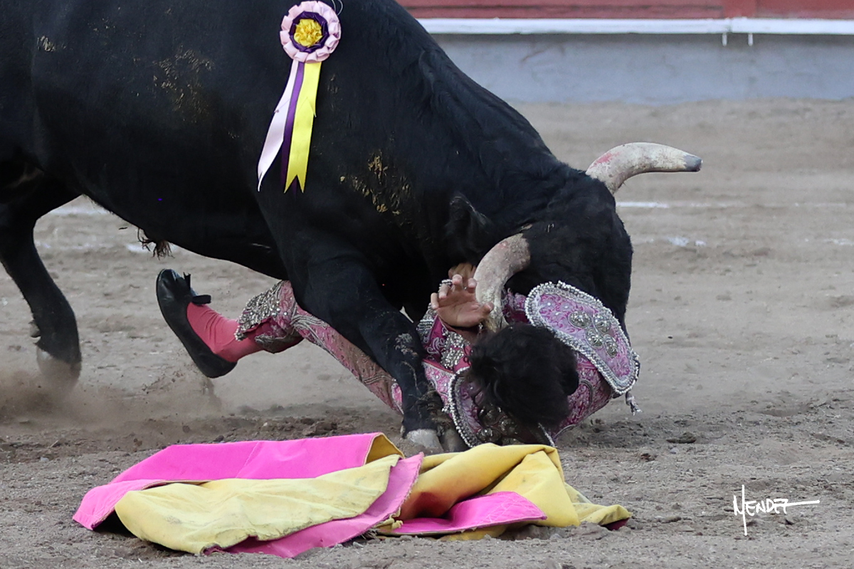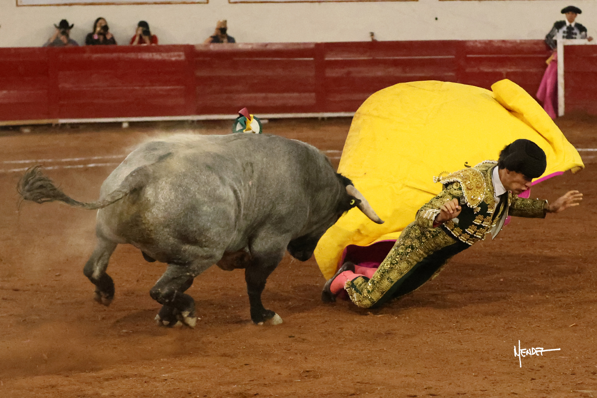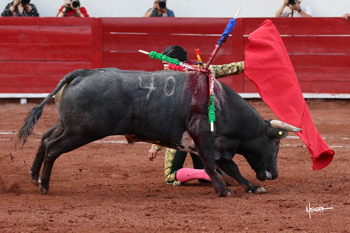 El Quitos saludó al primero de la tarde con una brega llevada, tratando de ganarle terreno hasta rematarlo por una media en el tercio. Comenzó la faena de muleta genuflexo, pasándolo por abajo para después sacarlo más allá del tercio y empezar a llevarlo sobre el pitón izquierdo. Le bajó la mano, le dio tiempo y trató de llevarlo con suavidad. Lo desarmó, así que recompuso y volvió a la cara de un animal incierto, que no humillaba y que no obedecía en exceso. Pasaba, pero buscaba y miraba. Le estaba avisando, pero siguió insistiendo, de nuevo al natural aprovechando la implique de los vuelos, pero sin evitar que le buscara. Se metió en tablas y el animal ya no pasaba. No tuvo acierto con los aceros, teniendo que descabellar.