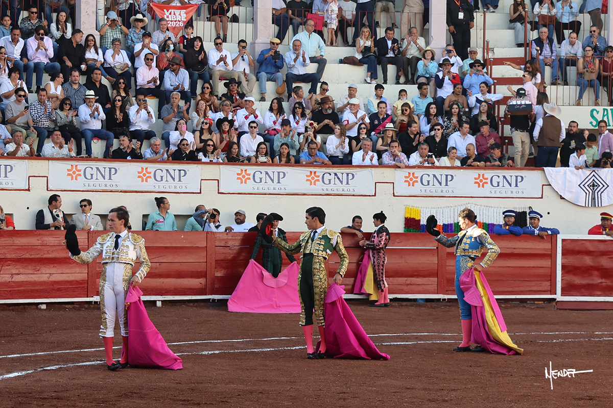 La Plaza de Toros de San Marcos de Aguascalientes ha celebrado la novillada de triunfadores en una tarde agradable y con tres cuartos de entrada. César Fernández “El Quitos”, Jairo López y Axel López se midieron a los ejemplares de La Playa. Los animales fueron muy variados en comportamiento y entrega en la tela, algunos de ellos, como el quinto, fueron aplaudidos en el arrastre. Sin embargo, también los hubo complejos, como el primero, el segundo o el sexto. El Quitos se midió a un primer novillo incierto y bronco con el que no tuvo opciones de lucimiento. Aún así, se mantuvo firme y entregado, buscándole las vueltas. Lo intentó ante el cuarto, pero no encontró el acople con otro complejo novillo de La Playa. Axel López se mantuvo firme ante el primero de su lote, un novillo sin clase ni fuerza al que trató de llevar, pero que no le brindó las opciones. Encontró acople en su faena ante el quinto, al que llevó, mayoritariamente, sobre el pitón izquierdo, pero al que cuajó. Deslució con el acero. Jairo López se midió a un gran tercero, un toro noble y de buena condición al que toreó a placer, con gusto y profundidad, cuajando una gran faena que empañó con los aceros. Su faena ante el sexto fue muy meritoria ante un complejo novillo que lo buscaba y con el que se la jugó poniéndose.