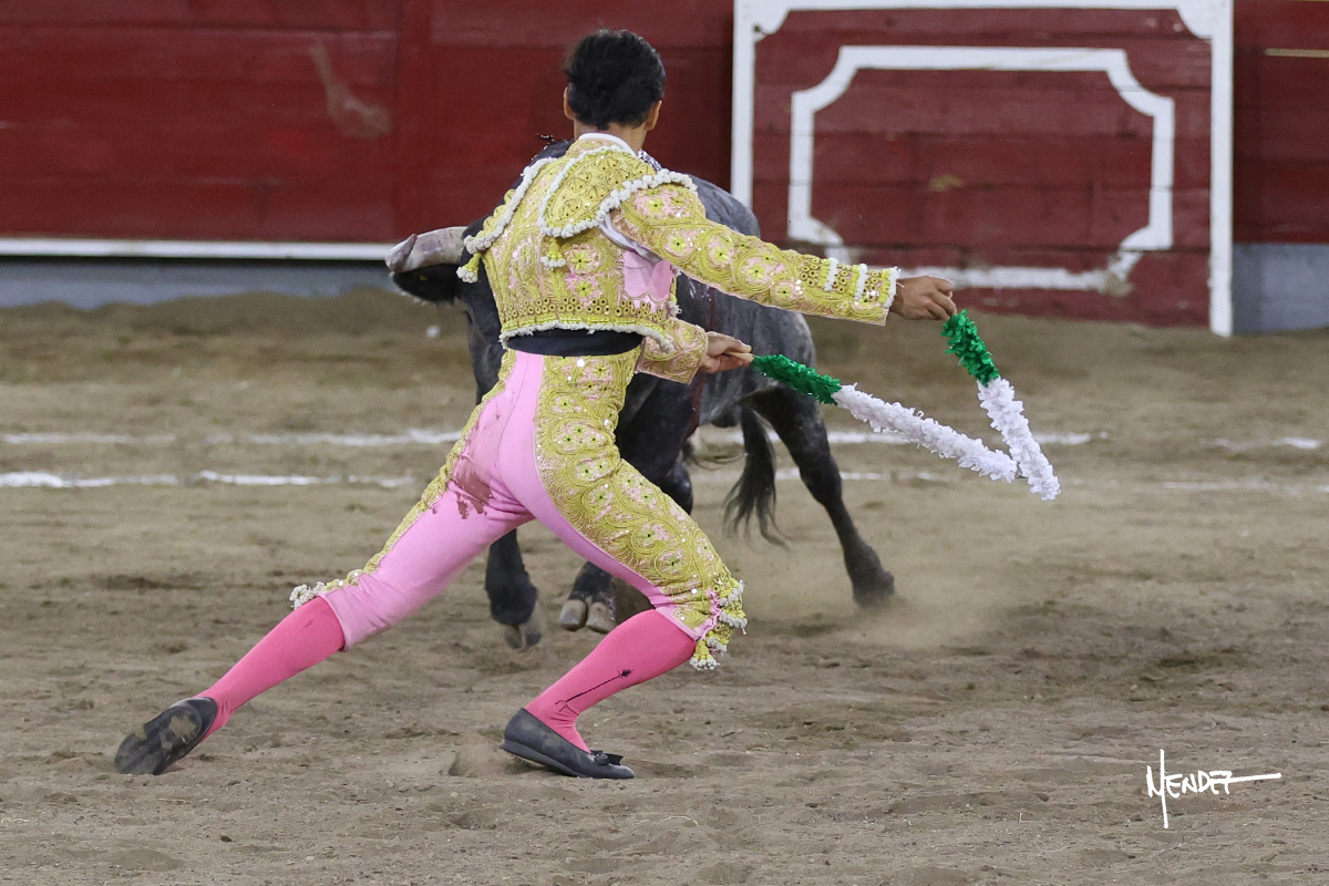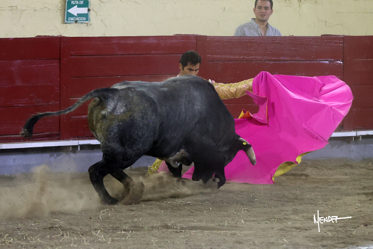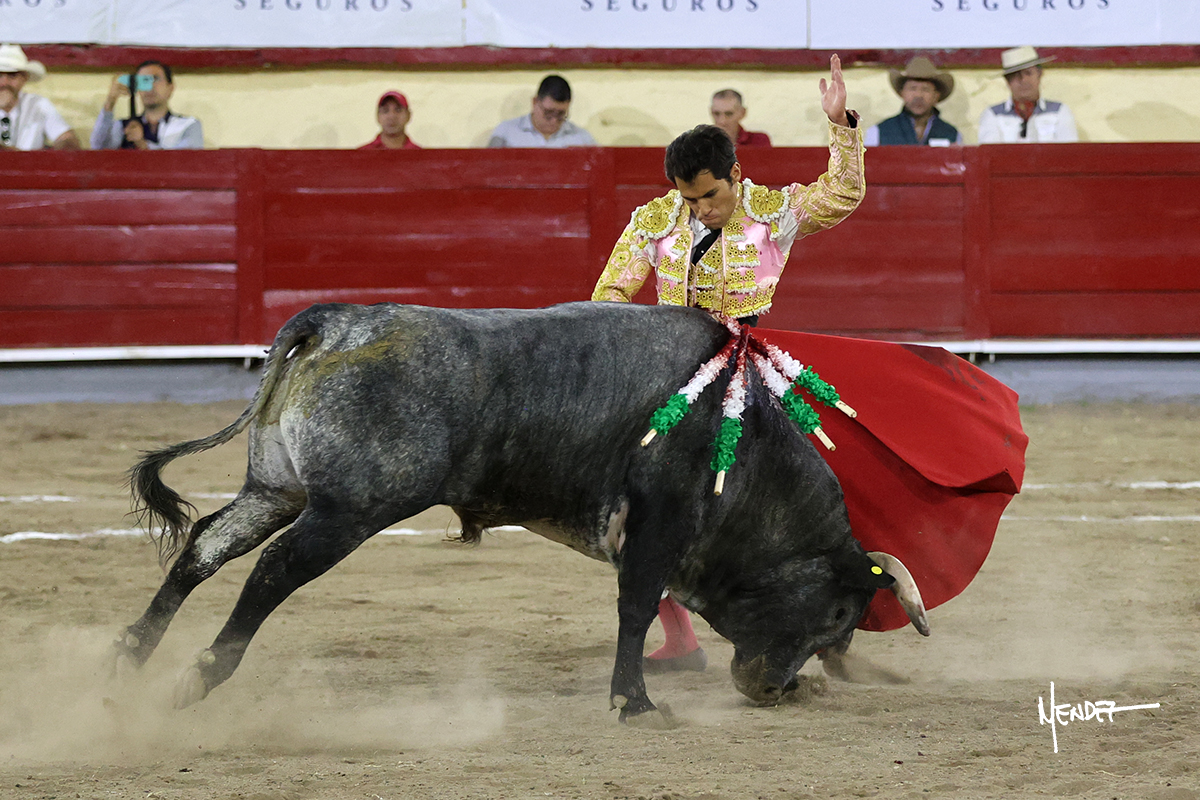 Axel López se fue a la puerta de chiqueros para saludar al segundo de su lote, con determinación y firmeza, emocionando en los tendidos. El tercio de banderillas lo desarrollaron los Hermanos López, con emoción, riesgo y acierto. Brindó a su hermano Jairo López y comenzó su labor de muleta con un ligero pero determinante tanteo por ambos pitones mientras le ganaba terreno. Se decidió por el pitón derecho de un animal noble que, a pesar de quedar a merced de sus pitones, no hizo por el. Continuó al natural, con largura, ayudándolo en las salidas, ya que tomaba mejor la tela que saliera de ella. Le dio emoción y variedad entre adornos y molinetes al compás de los “olé” del respetable. Lo mostró por el derecho, encontrando una embestida algo más corta, pero obediente, quedando sometido a las demandas de Axel López. Había cuajado una faena que culminó con una estocada al segundo intento.