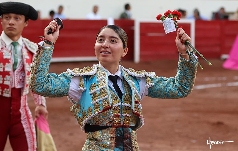 Luz Elena Martínez saludó con una larga cambiada de rodillas junto a las tablas al primero de la tarde. Después continuó estirándose con el animal, con ritmo y calado. Tras un brindis a su los de espadas, Luz Elena comenzó su faena de muleta genuflexa, pasándolo por abajo, entre probaturas por ambos pitones. Se decidió por el derecho, desarrollando una tanda de calado y expresión. Se adornó mientras le daba tiempo y sitio a un novillo que seguía el engaño y atendía con prontitud a las demandas de la novillera. Cambió al pitón izquierdo, desarrollando naturales de peso y transmisión con los que llegaba. Sin embargo, tras aquella tanda recuperó la mano derecha, envolviéndoselo con ritmo y ligazón, aunque en pasándolo de uno a uno. Supo vender su faena y entender las embestidas de su adversario a la perfección, midiendo los tiempos en cada serie. Culminó por manoletinas y una estocada efectiva.