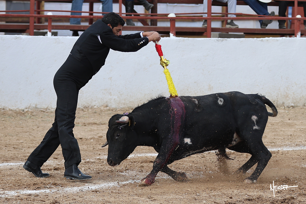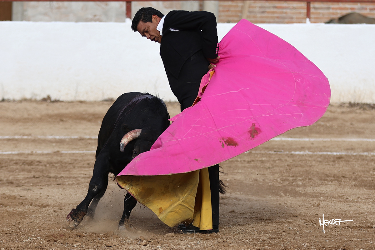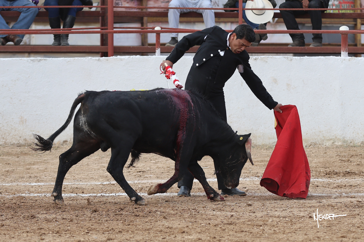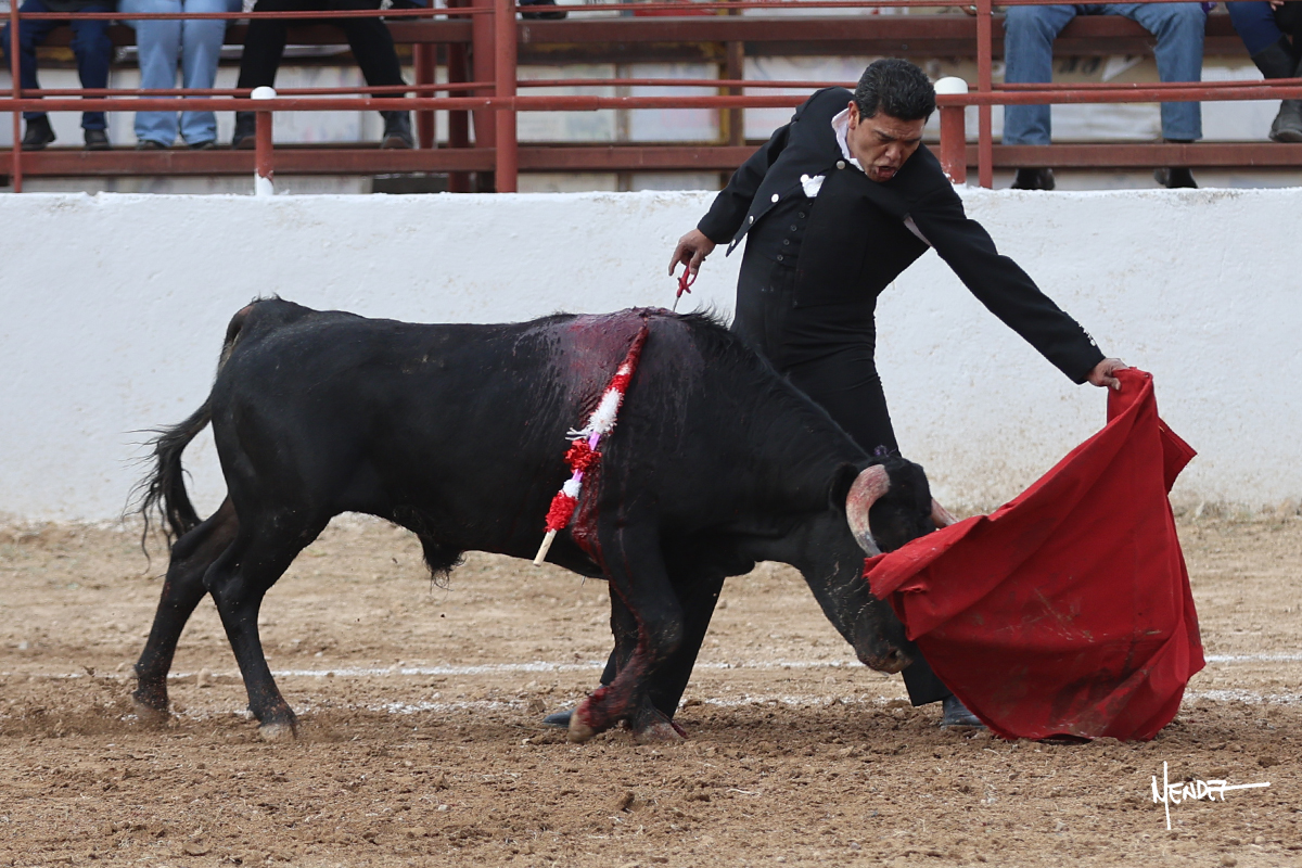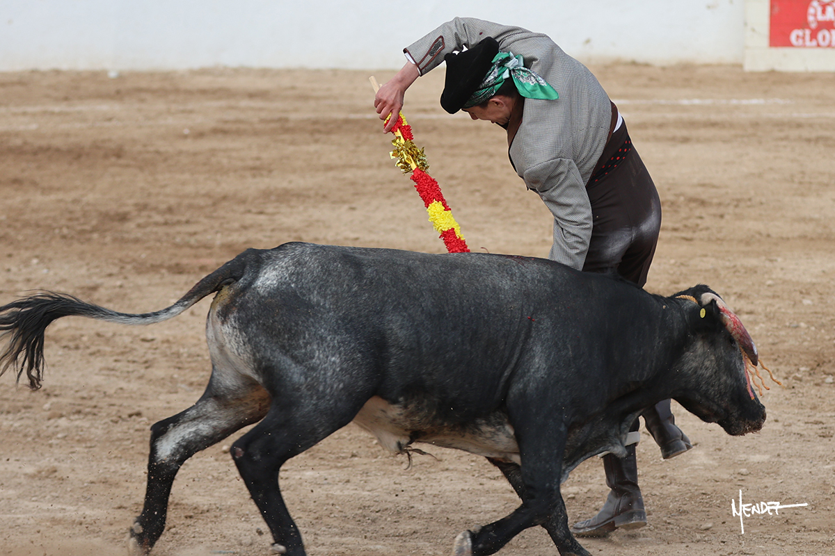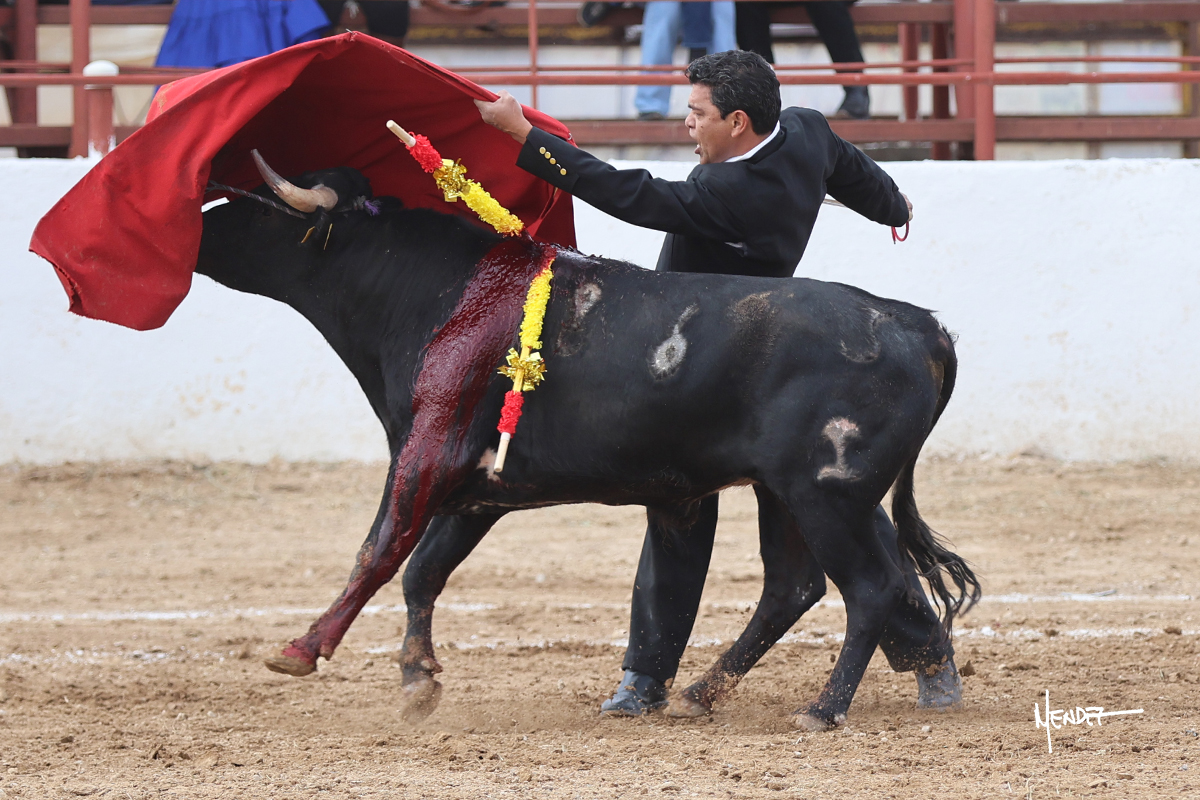 Leonardo hizo las delicias de los aficionados con variedad y lucimiento en su saludo capotero. Las banderillas las completaron entre AAA En la faena de muleta comenzó doblándose con él por abajo, enseñándolo, apelando al público, emocionando y llegando. Siguió al natural dándole longitud y profundidad a los muletazos. También lo mostró sobre el derecho, complementando con variedad y muchos recursos que lucieron y vistieron su faena. Se lo envolvió en el uno a uno y culminó con unos doblones por abajo.