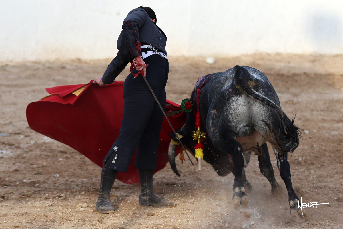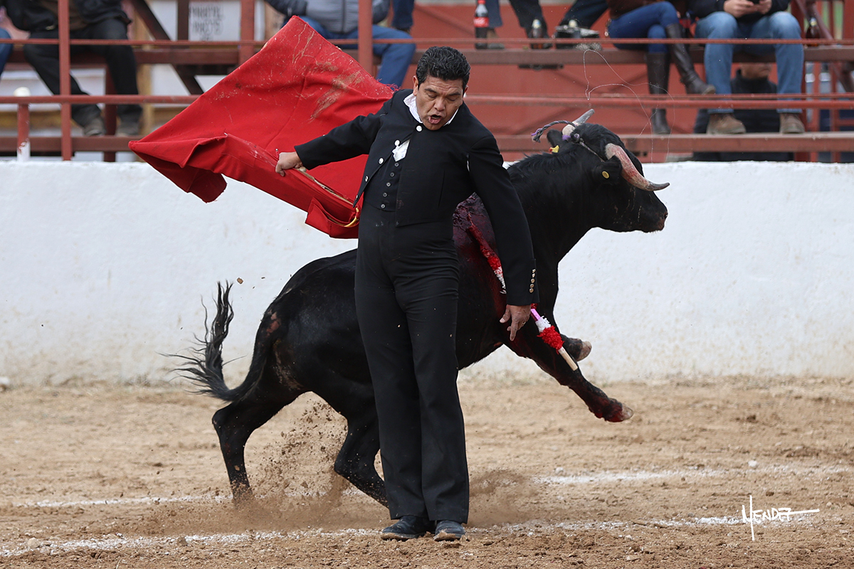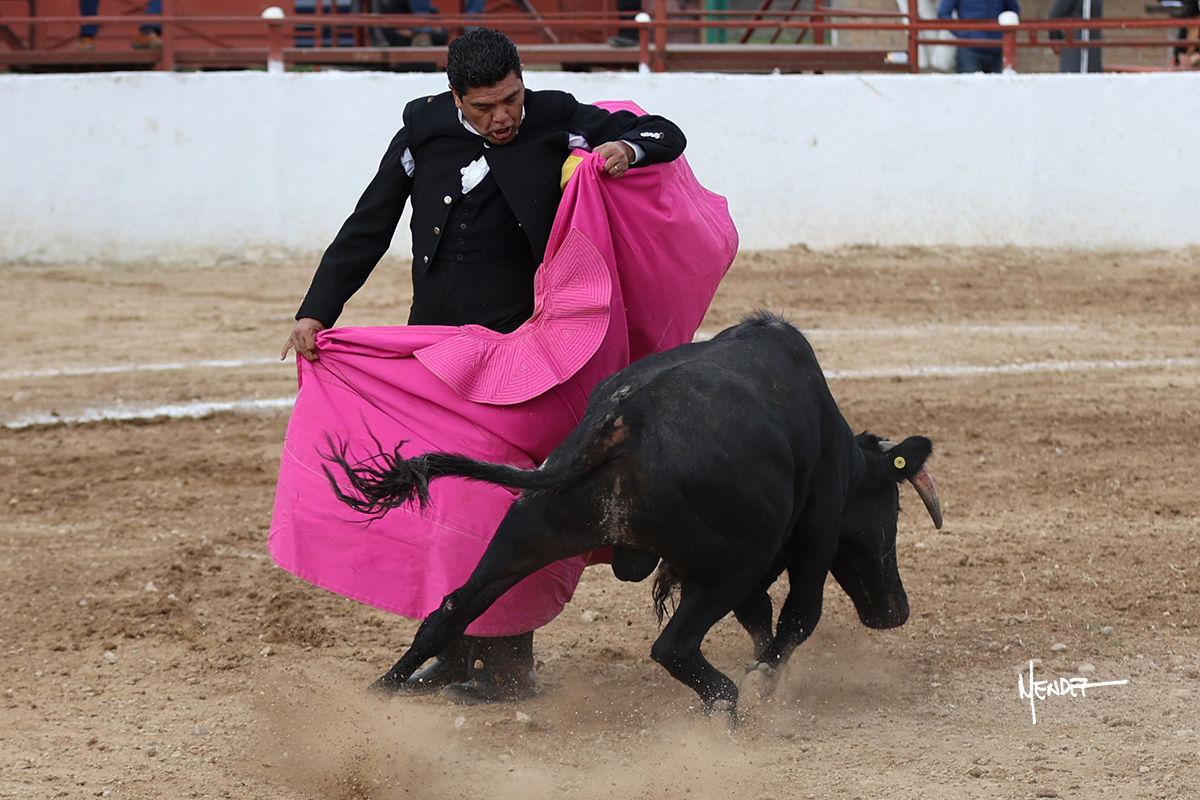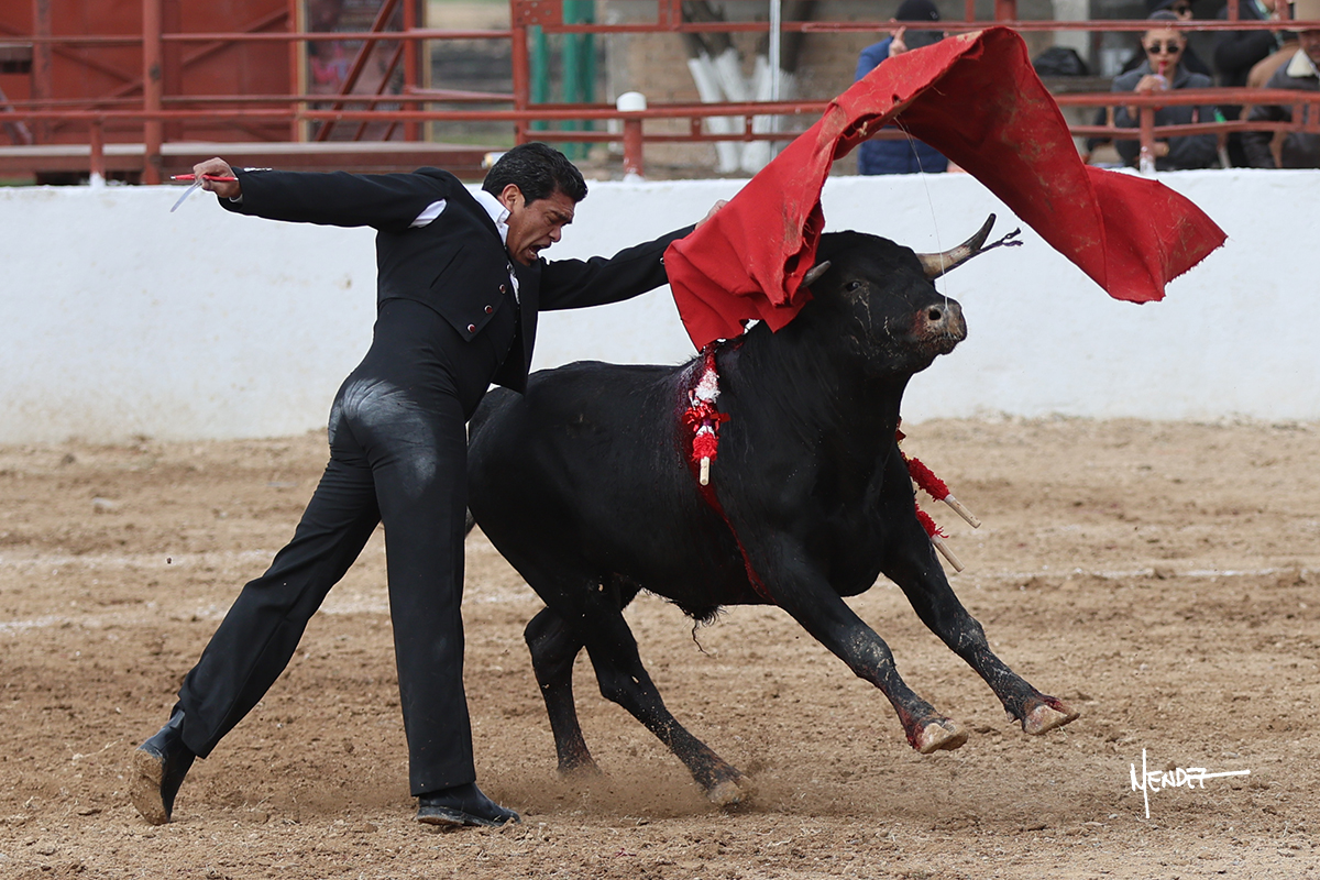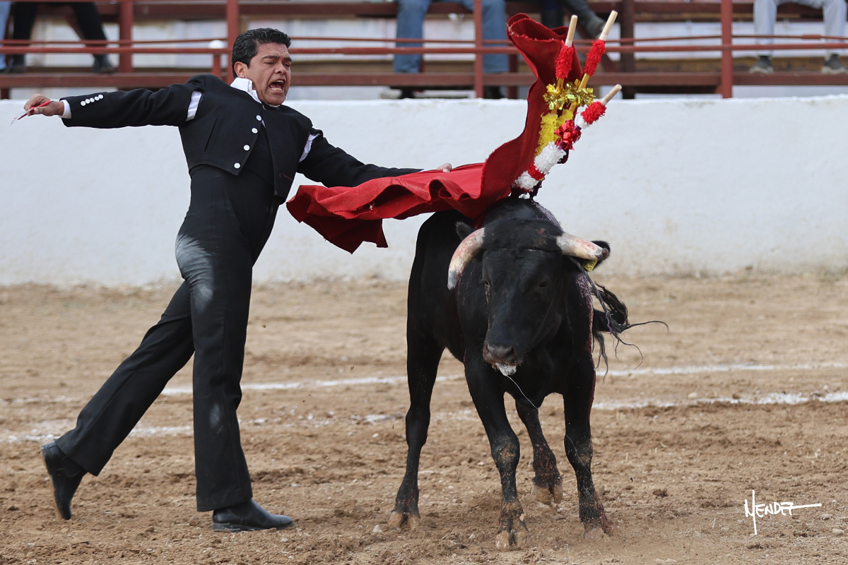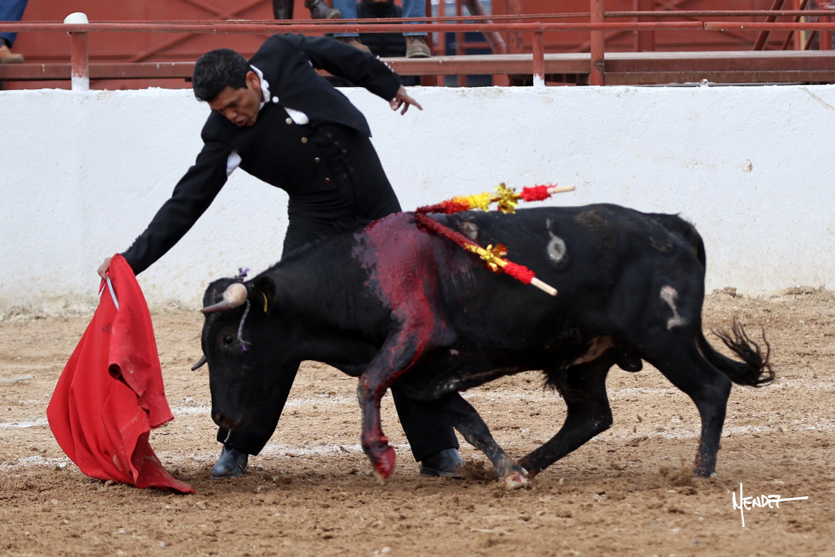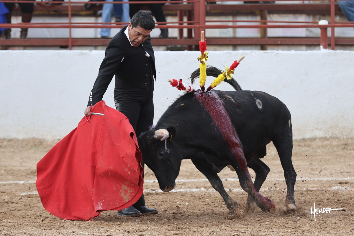 Leonardo hizo las delicias de los aficionados con variedad y lucimiento en su saludo capotero. Las banderillas las completaron entre AAA En la faena de muleta comenzó doblándose con él por abajo, enseñándolo, apelando al público, emocionando y llegando. Siguió al natural dándole longitud y profundidad a los muletazos. También lo mostró sobre el derecho, complementando con variedad y muchos recursos que lucieron y vistieron su faena. Se lo envolvió en el uno a uno y culminó con unos doblones por abajo.