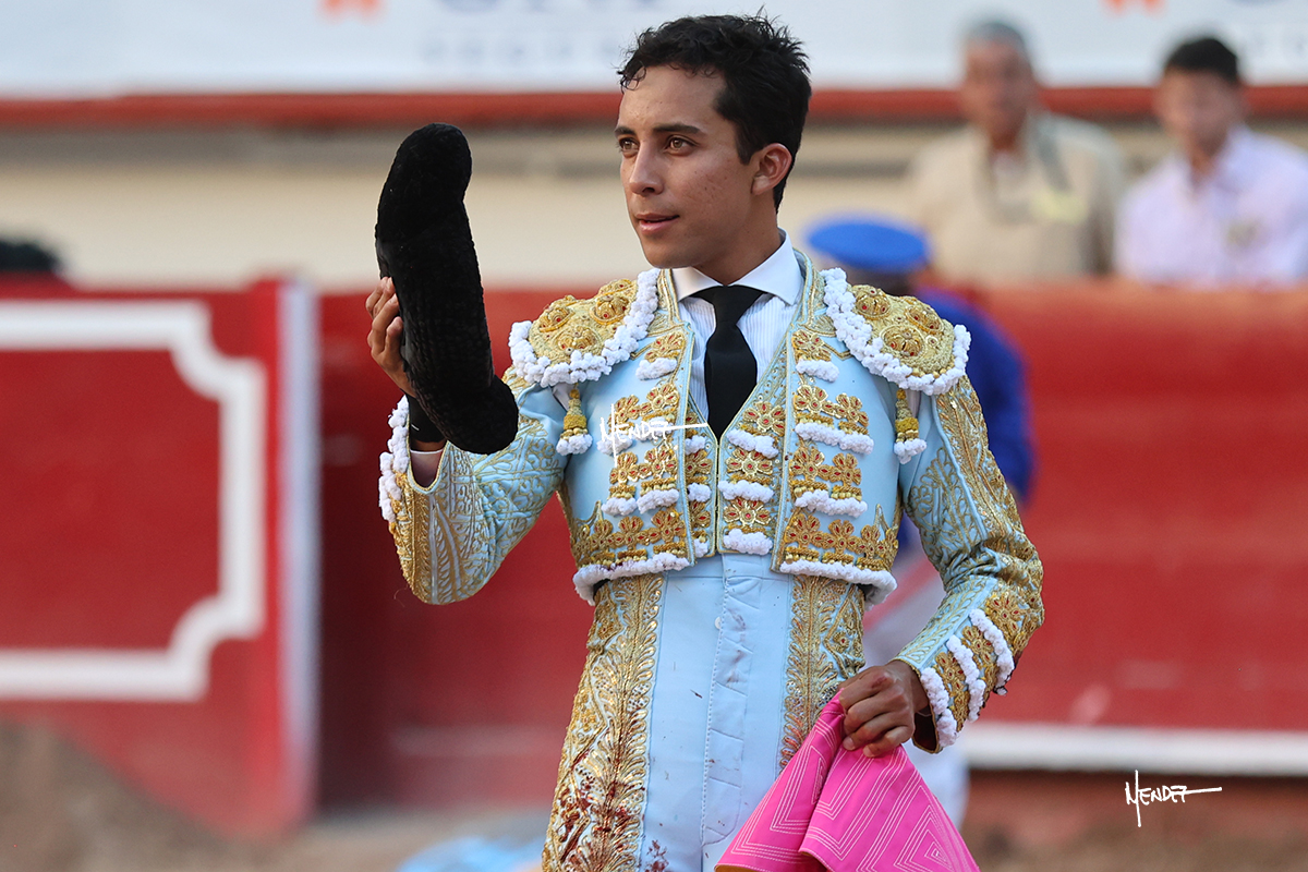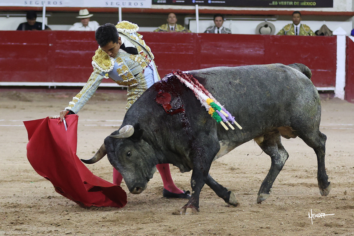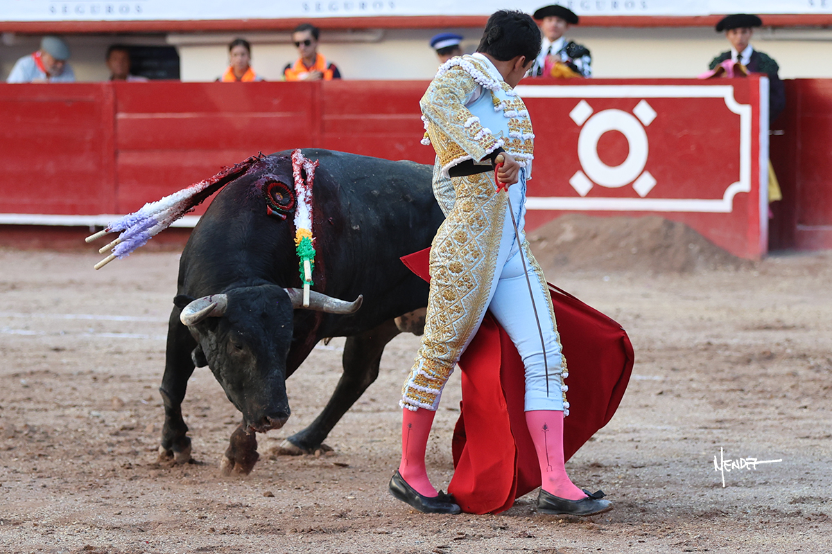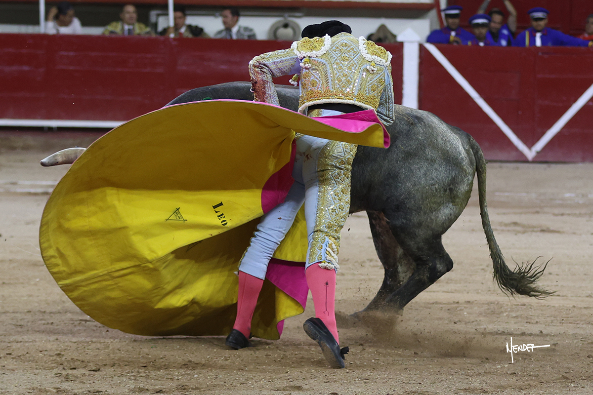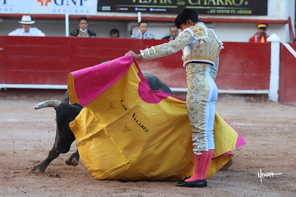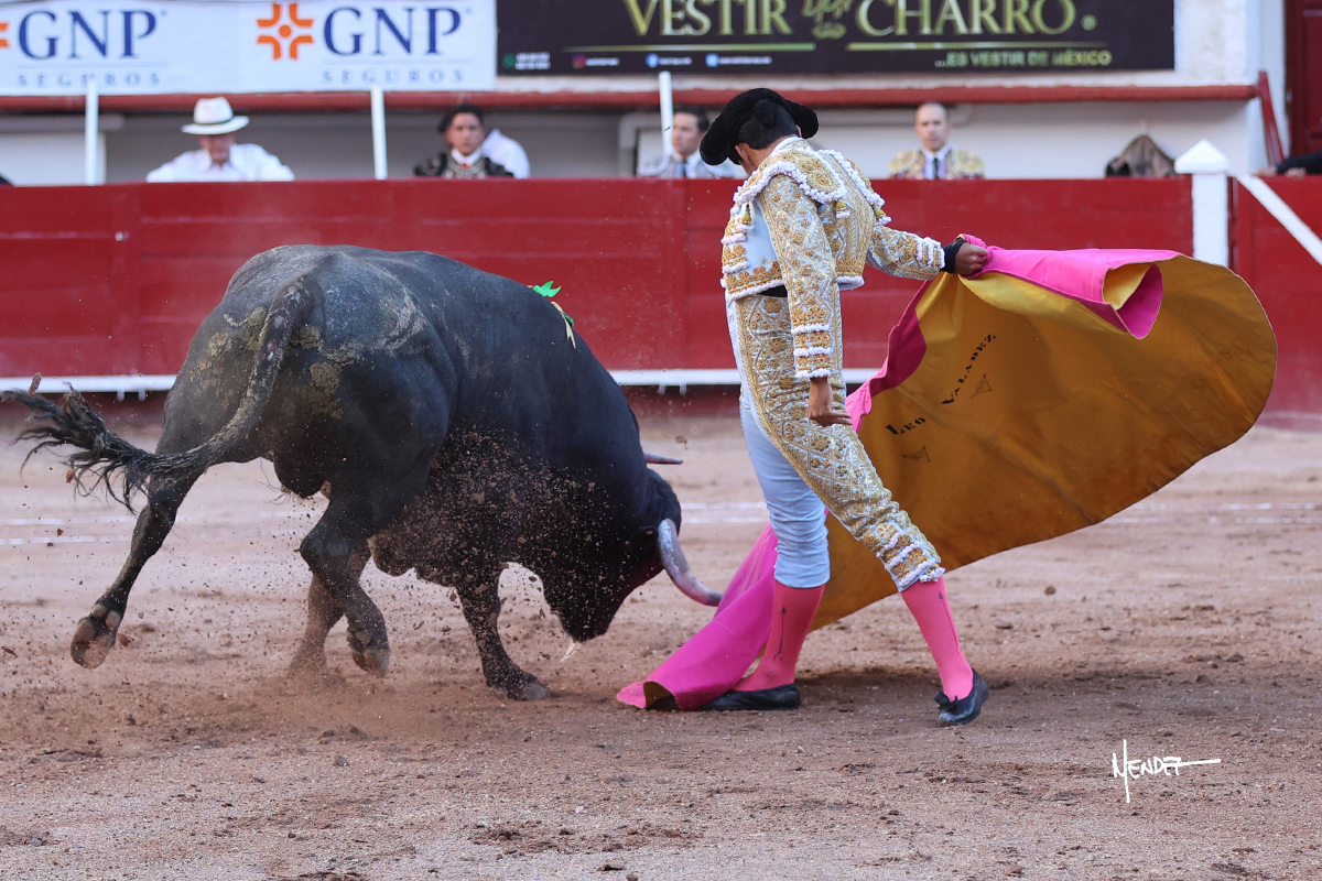 Leo Valadez se fue directo a recibir a portagayola al primero de la tarde. Después siguió con un farol desde los mismos medios, continuó por verónicas y chicuelinas hasta rematarlo con una larga cordobesa. Utilizó su turno de quites para lucirse con variedad y torería, sobre todo por tafalleras. Además, protagonizó el tercio de banderillas, poniéndolas con acierto y determinación. El único de faena fue toda una declaración de intenciones con la muleta a la espalda. Lo cambió de terrenos y en los medios siguió sobre el derecho, llevándolo largo a media altura, teniendo que insistirle con mucha voz para fijarlo y meterlo. Se tragaba los dos primeros muletazos. El animal se vino a menos, pero las embestidas que le robó Valadez calaron con fuerzo en los tendidos. Continuó al natural, uno a uno, en una faena muy meritoria, en la que estuvo por encima de las circunstancias, acortando las distancias para hacérselo tragar. Se lo alcanzó a envolver y culminó con unas manoletinas muy ajustadas. Se tiró con todo, pero el animal no dobló, así que tuvo que descabellar.
