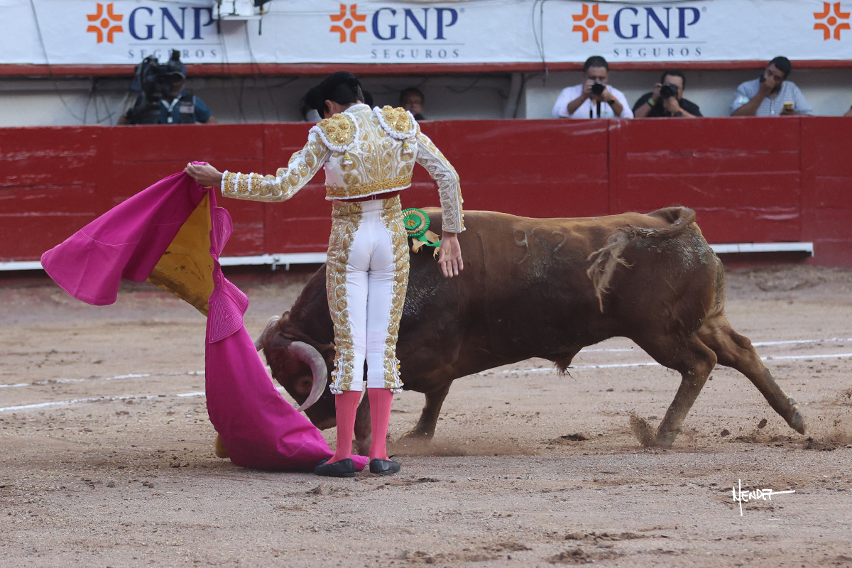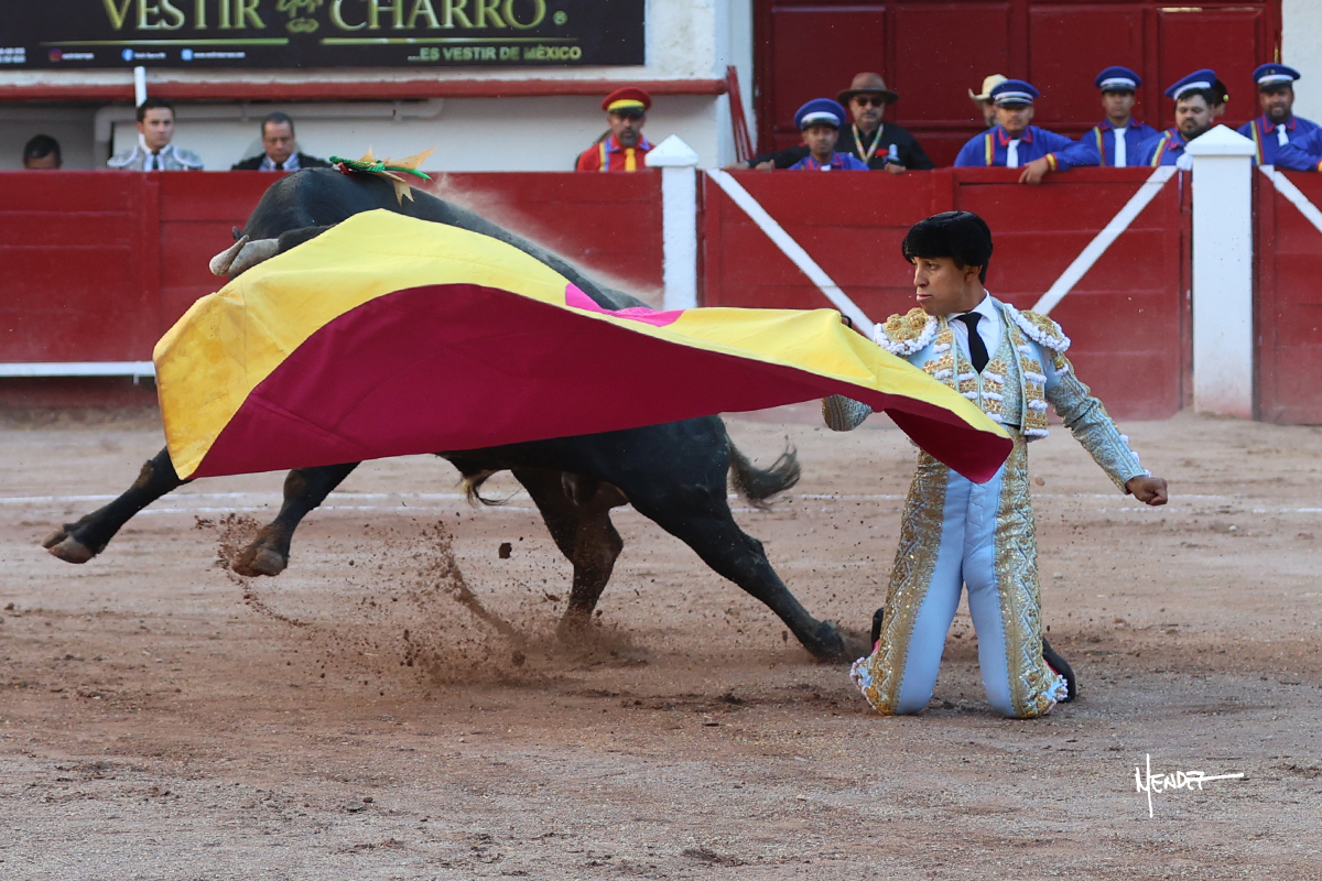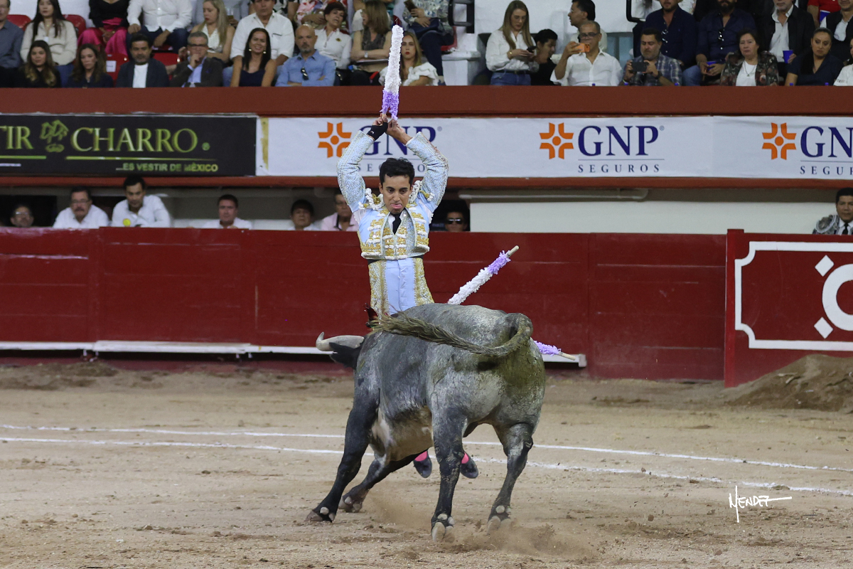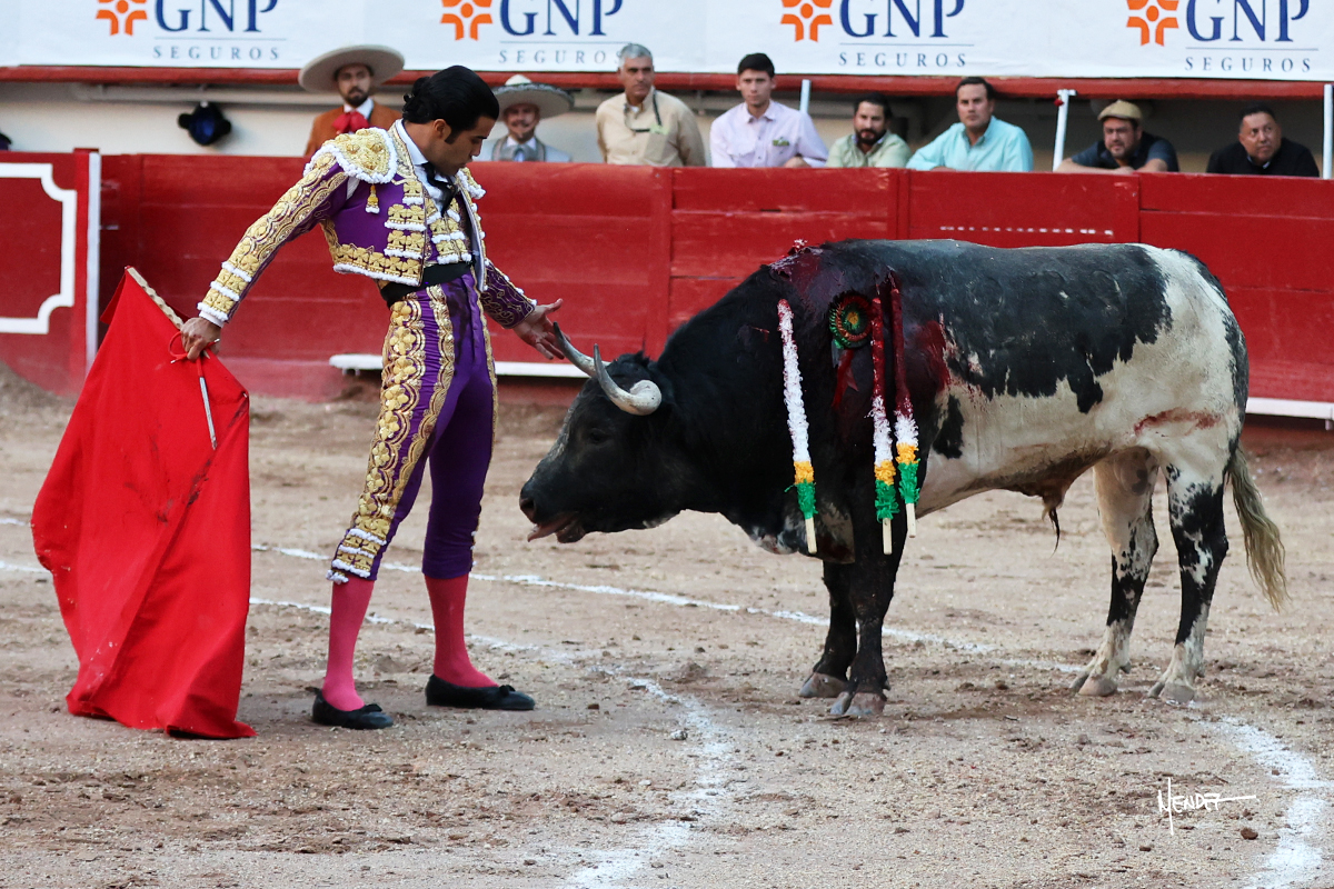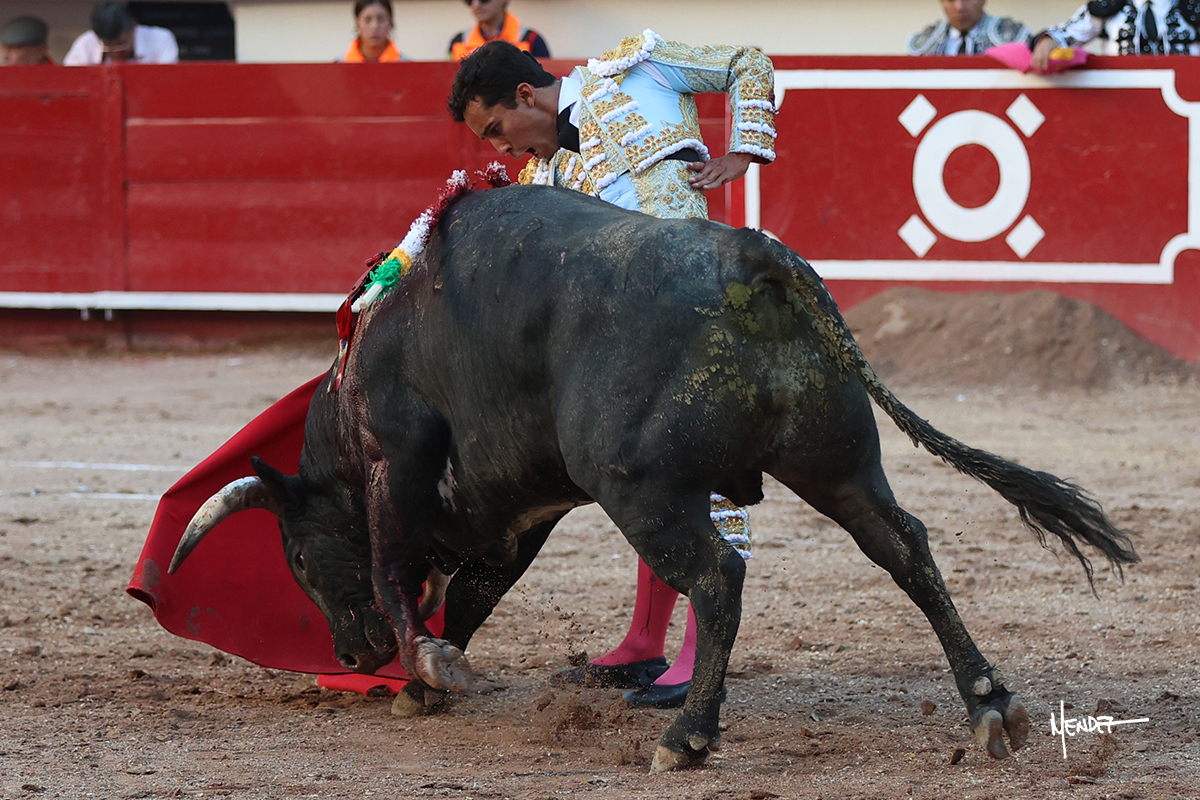 Leo Valadez se fue directo a recibir a portagayola al primero de la tarde. Después siguió con un farol desde los mismos medios, continuó por verónicas y chicuelinas hasta rematarlo con una larga cordobesa. Utilizó su turno de quites para lucirse con variedad y torería, sobre todo por tafalleras. Además, protagonizó el tercio de banderillas, poniéndolas con acierto y determinación. El único de faena fue toda una declaración de intenciones con la muleta a la espalda. Lo cambió de terrenos y en los medios siguió sobre el derecho, llevándolo largo a media altura, teniendo que insistirle con mucha voz para fijarlo y meterlo. Se tragaba los dos primeros muletazos. El animal se vino a menos, pero las embestidas que le robó Valadez calaron con fuerzo en los tendidos. Continuó al natural, uno a uno, en una faena muy meritoria, en la que estuvo por encima de las circunstancias, acortando las distancias para hacérselo tragar. Se lo alcanzó a envolver y culminó con unas manoletinas muy ajustadas. Se tiró con todo, pero el animal no dobló, así que tuvo que descabellar.