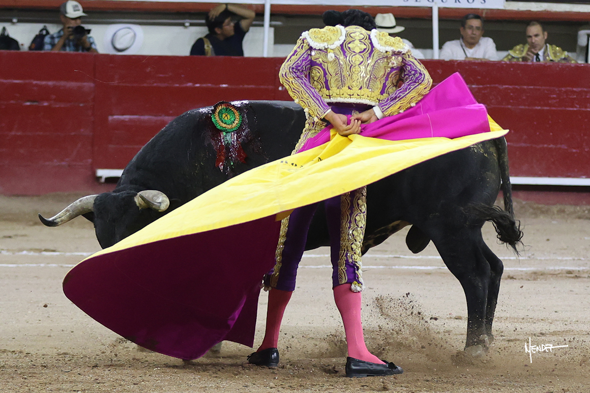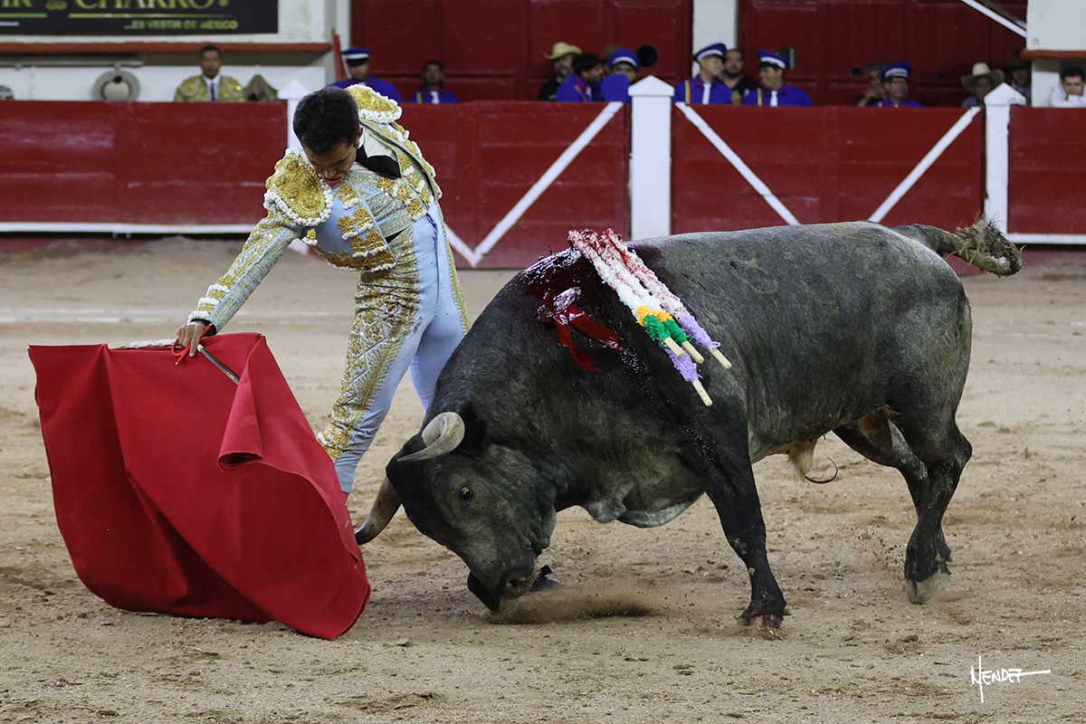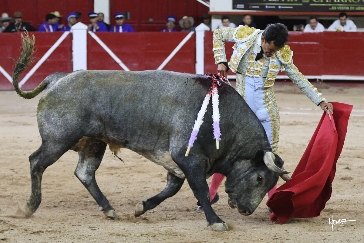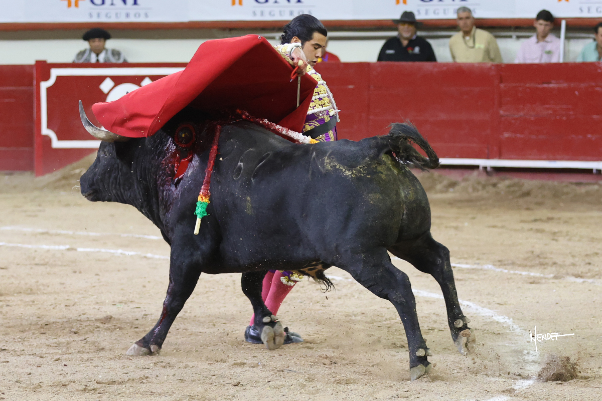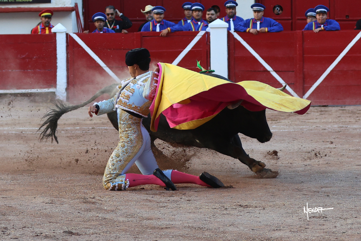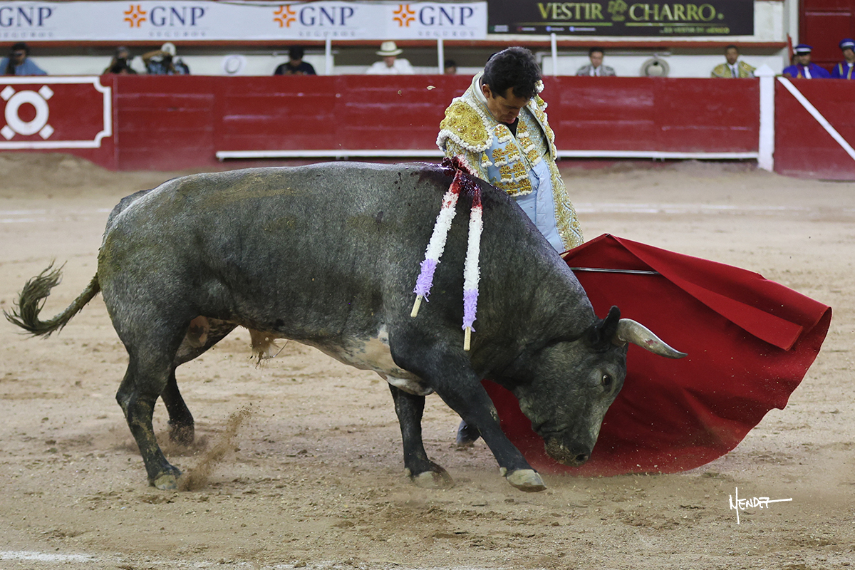 Leo Valadez se fue directo a recibir a portagayola al primero de la tarde. Después siguió con un farol desde los mismos medios, continuó por verónicas y chicuelinas hasta rematarlo con una larga cordobesa. Utilizó su turno de quites para lucirse con variedad y torería, sobre todo por tafalleras. Además, protagonizó el tercio de banderillas, poniéndolas con acierto y determinación. El único de faena fue toda una declaración de intenciones con la muleta a la espalda. Lo cambió de terrenos y en los medios siguió sobre el derecho, llevándolo largo a media altura, teniendo que insistirle con mucha voz para fijarlo y meterlo. Se tragaba los dos primeros muletazos. El animal se vino a menos, pero las embestidas que le robó Valadez calaron con fuerzo en los tendidos. Continuó al natural, uno a uno, en una faena muy meritoria, en la que estuvo por encima de las circunstancias, acortando las distancias para hacérselo tragar. Se lo alcanzó a envolver y culminó con unas manoletinas muy ajustadas. Se tiró con todo, pero el animal no dobló, así que tuvo que descabellar.