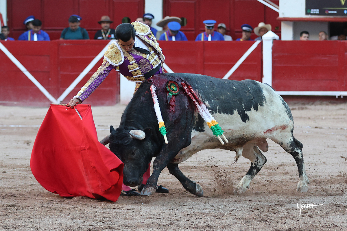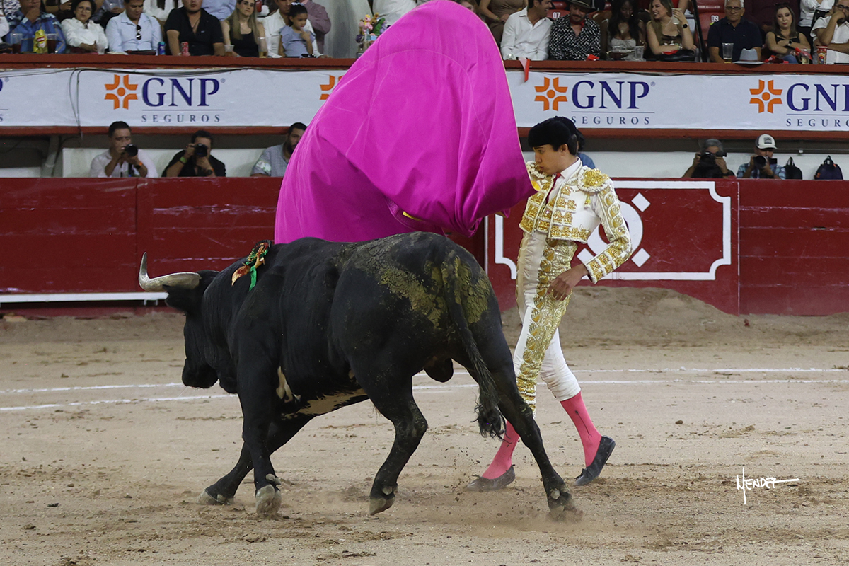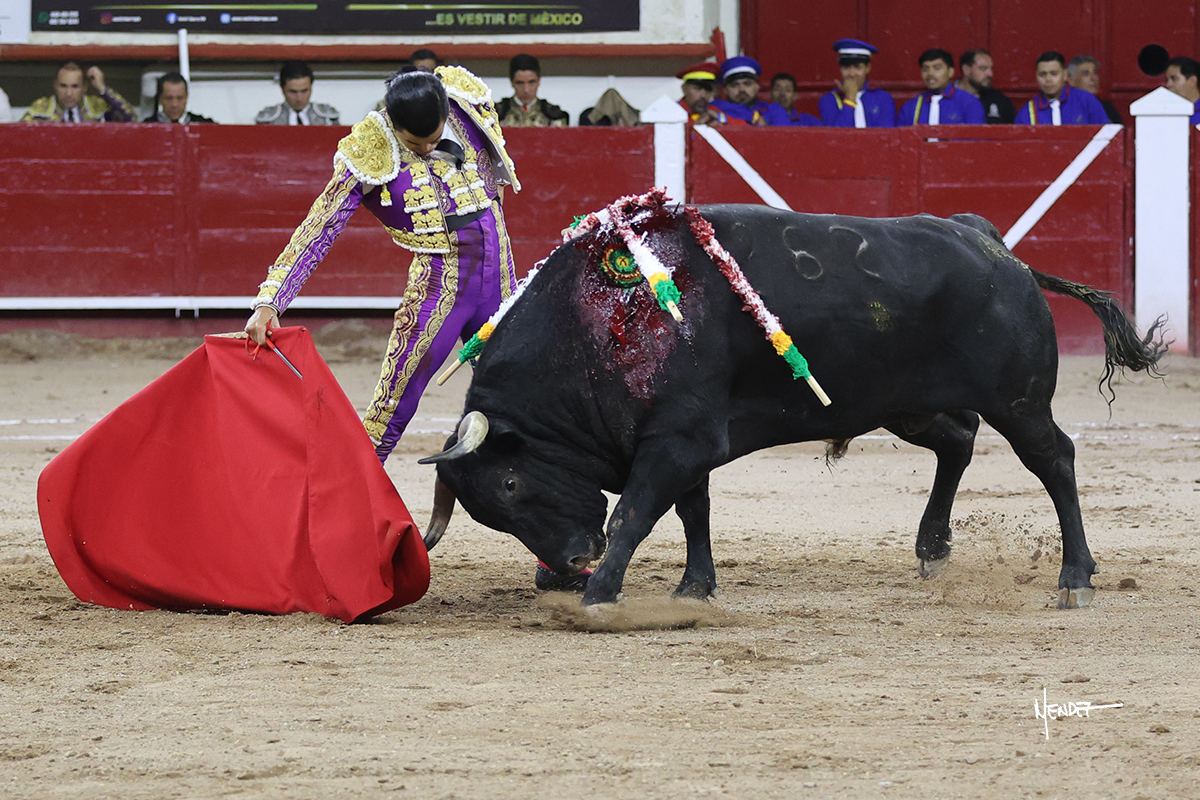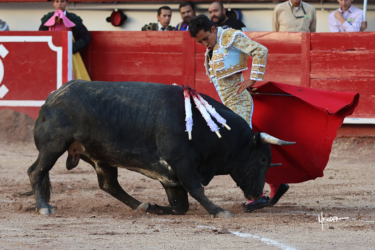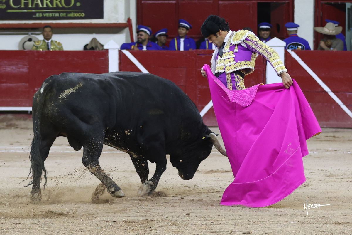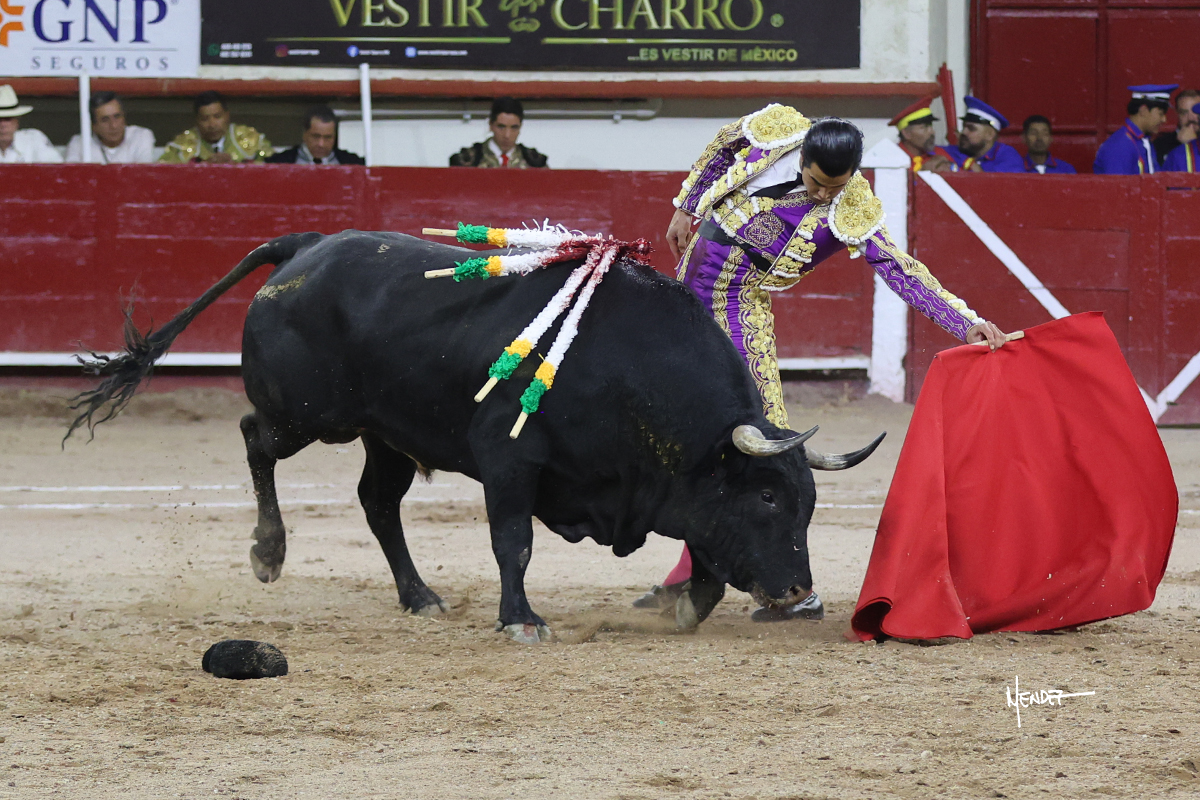 Leo Valadez se fue directo a recibir a portagayola al primero de la tarde. Después siguió con un farol desde los mismos medios, continuó por verónicas y chicuelinas hasta rematarlo con una larga cordobesa. Utilizó su turno de quites para lucirse con variedad y torería, sobre todo por tafalleras. Además, protagonizó el tercio de banderillas, poniéndolas con acierto y determinación. El único de faena fue toda una declaración de intenciones con la muleta a la espalda. Lo cambió de terrenos y en los medios siguió sobre el derecho, llevándolo largo a media altura, teniendo que insistirle con mucha voz para fijarlo y meterlo. Se tragaba los dos primeros muletazos. El animal se vino a menos, pero las embestidas que le robó Valadez calaron con fuerzo en los tendidos. Continuó al natural, uno a uno, en una faena muy meritoria, en la que estuvo por encima de las circunstancias, acortando las distancias para hacérselo tragar. Se lo alcanzó a envolver y culminó con unas manoletinas muy ajustadas. Se tiró con todo, pero el animal no dobló, así que tuvo que descabellar.