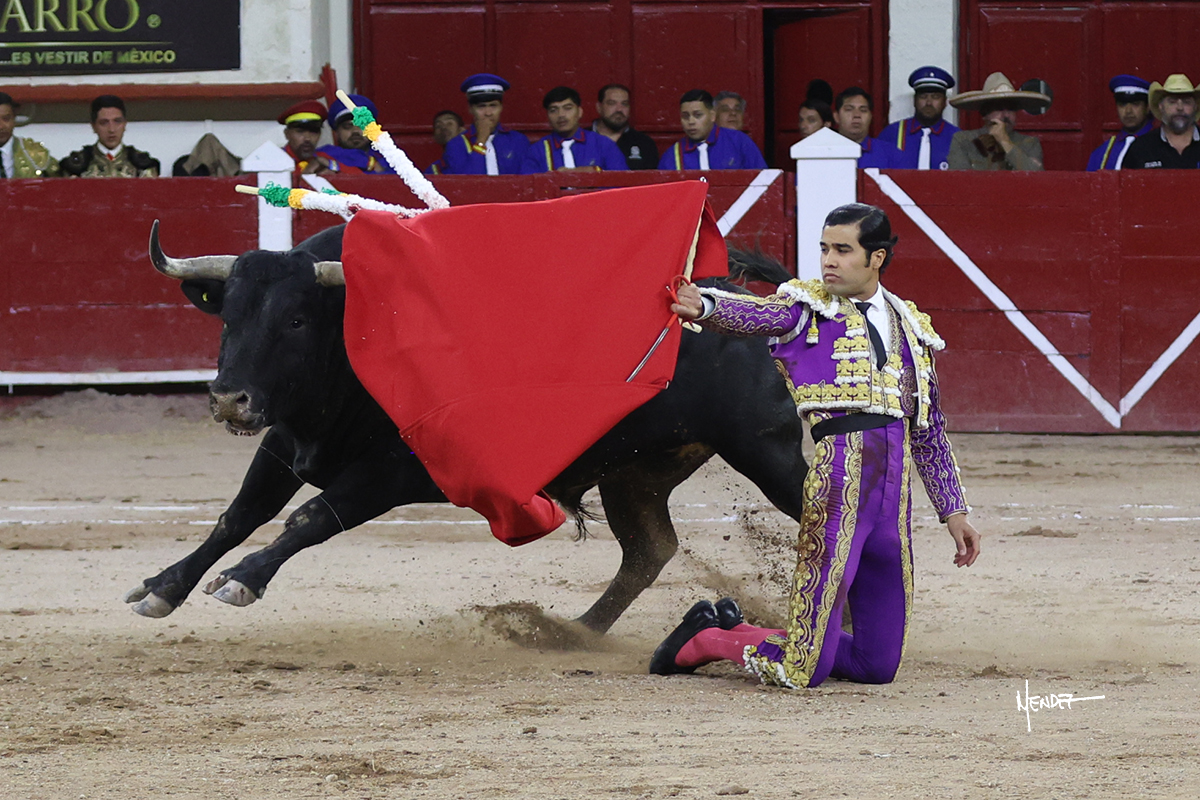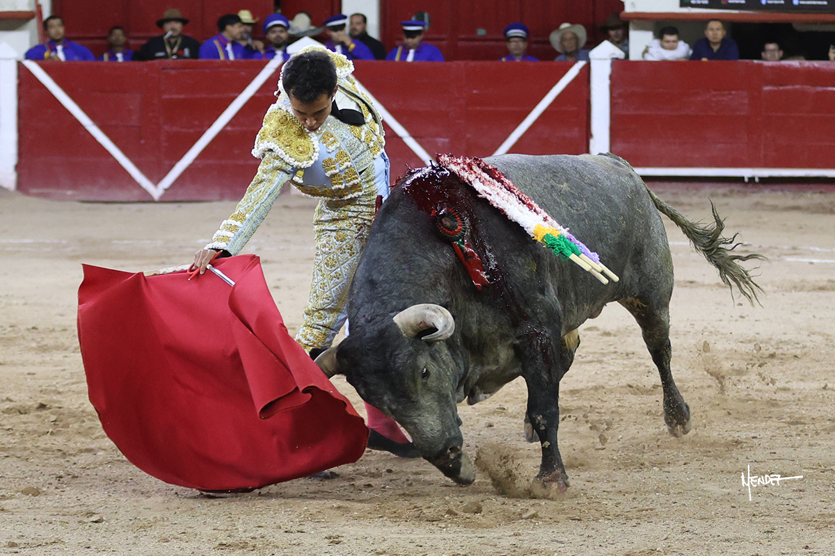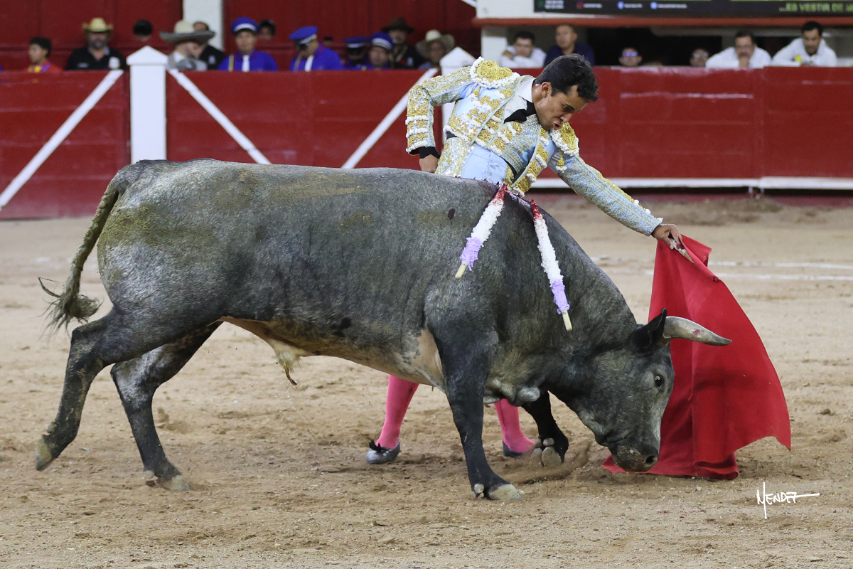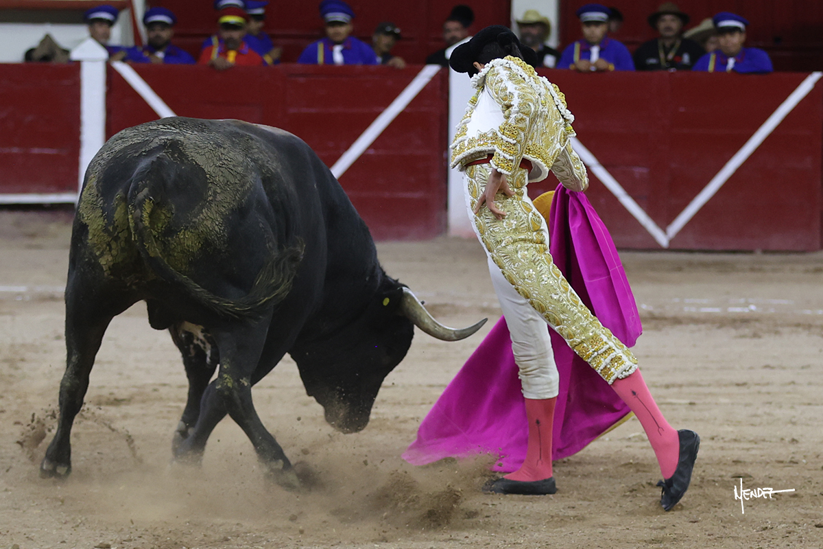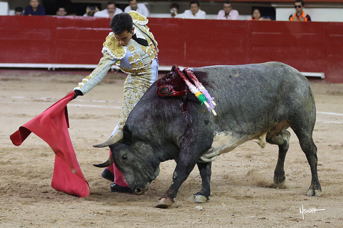 Leo Valadez se fue directo a recibir a portagayola al primero de la tarde. Después siguió con un farol desde los mismos medios, continuó por verónicas y chicuelinas hasta rematarlo con una larga cordobesa. Utilizó su turno de quites para lucirse con variedad y torería, sobre todo por tafalleras. Además, protagonizó el tercio de banderillas, poniéndolas con acierto y determinación. El único de faena fue toda una declaración de intenciones con la muleta a la espalda. Lo cambió de terrenos y en los medios siguió sobre el derecho, llevándolo largo a media altura, teniendo que insistirle con mucha voz para fijarlo y meterlo. Se tragaba los dos primeros muletazos. El animal se vino a menos, pero las embestidas que le robó Valadez calaron con fuerzo en los tendidos. Continuó al natural, uno a uno, en una faena muy meritoria, en la que estuvo por encima de las circunstancias, acortando las distancias para hacérselo tragar. Se lo alcanzó a envolver y culminó con unas manoletinas muy ajustadas. Se tiró con todo, pero el animal no dobló, así que tuvo que descabellar.