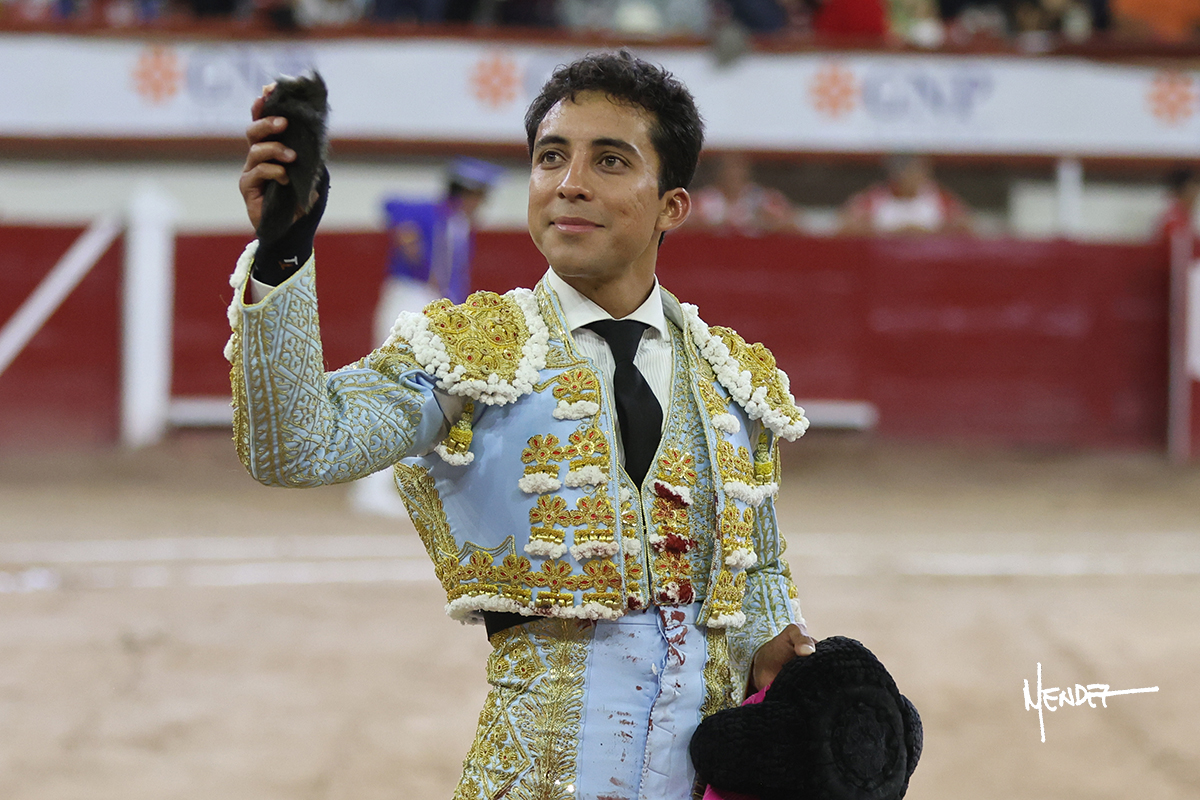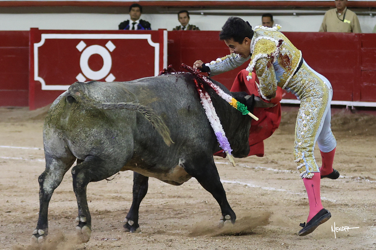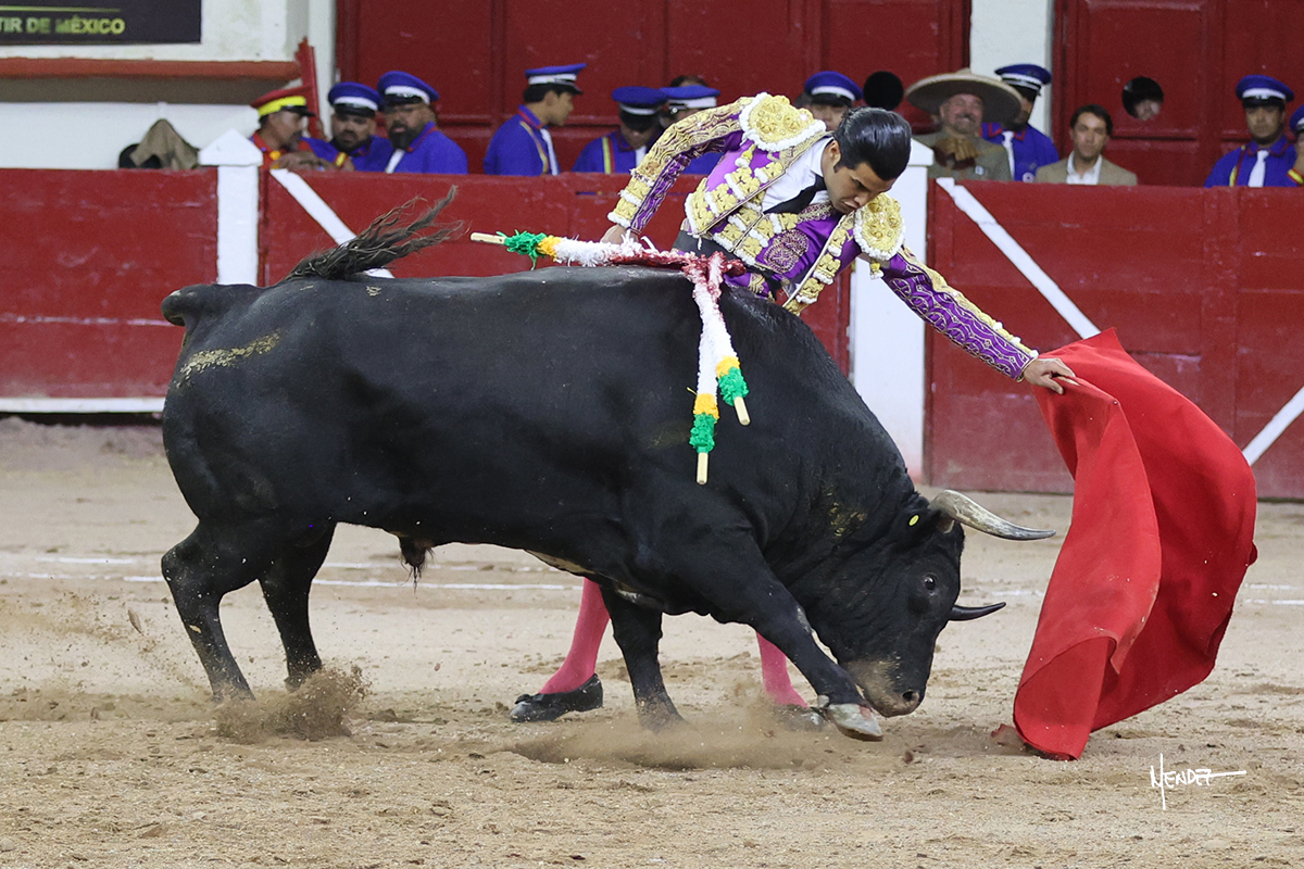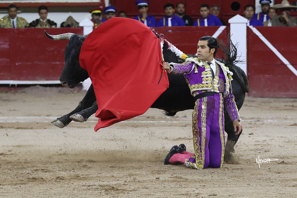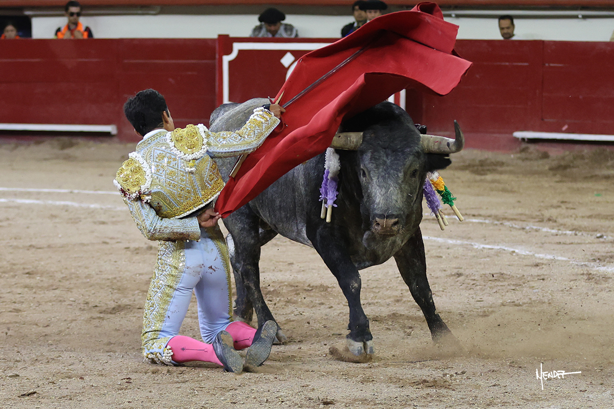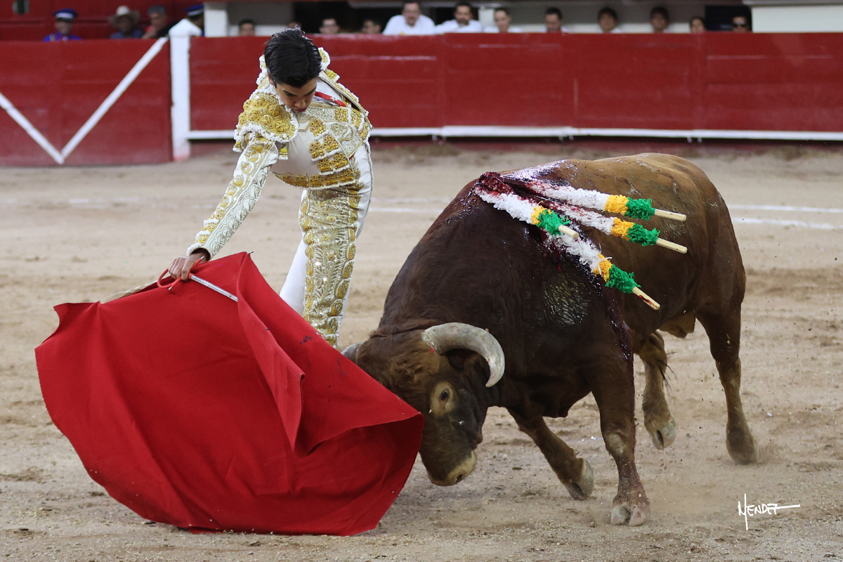 Leo Valadez se fue directo a recibir a portagayola al primero de la tarde. Después siguió con un farol desde los mismos medios, continuó por verónicas y chicuelinas hasta rematarlo con una larga cordobesa. Utilizó su turno de quites para lucirse con variedad y torería, sobre todo por tafalleras. Además, protagonizó el tercio de banderillas, poniéndolas con acierto y determinación. El único de faena fue toda una declaración de intenciones con la muleta a la espalda. Lo cambió de terrenos y en los medios siguió sobre el derecho, llevándolo largo a media altura, teniendo que insistirle con mucha voz para fijarlo y meterlo. Se tragaba los dos primeros muletazos. El animal se vino a menos, pero las embestidas que le robó Valadez calaron con fuerzo en los tendidos. Continuó al natural, uno a uno, en una faena muy meritoria, en la que estuvo por encima de las circunstancias, acortando las distancias para hacérselo tragar. Se lo alcanzó a envolver y culminó con unas manoletinas muy ajustadas. Se tiró con todo, pero el animal no dobló, así que tuvo que descabellar.