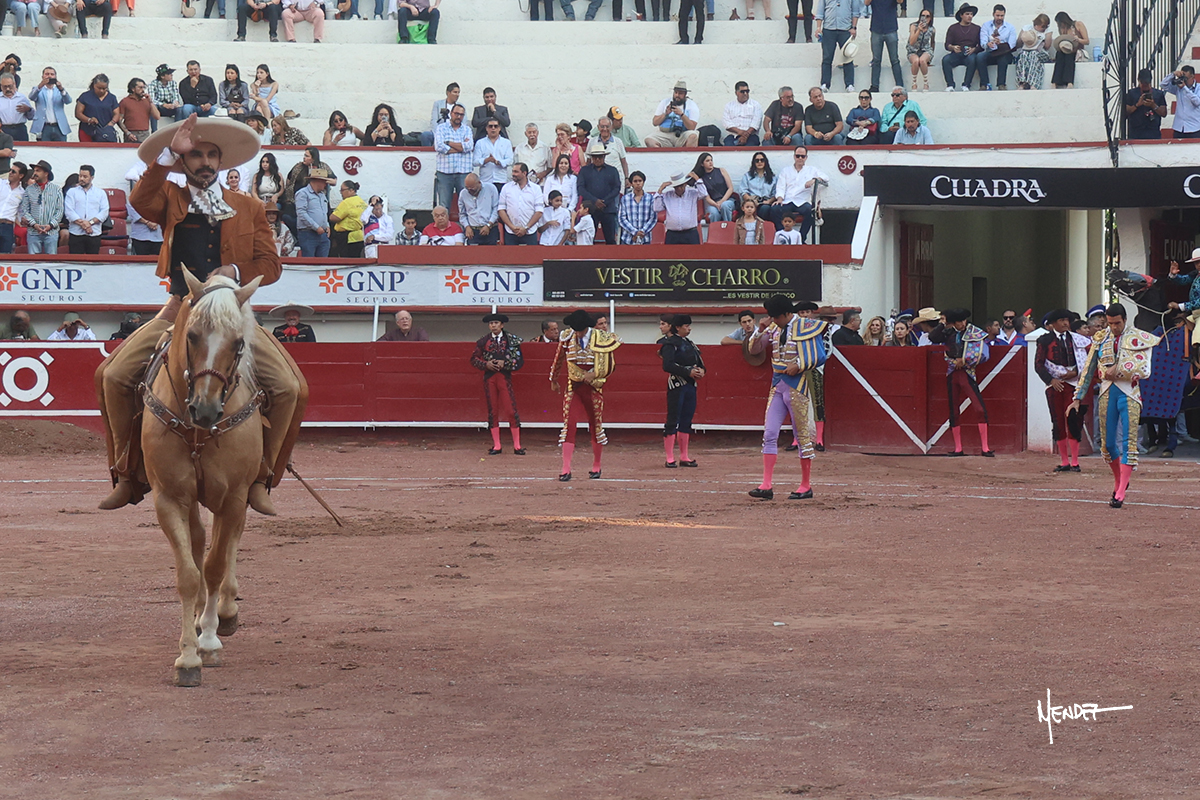 El banderillero Gerardo Angelino, de la cuadrilla de Diego San Román, saludó una ovación tras su buena labor en el tercio de banderillas.