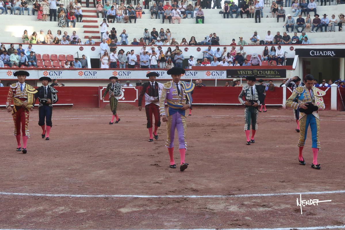 Monumental de Aguascalientes. Quinta corrida de toros del serial taurino de la Feria de San Marcos en una tarde calurosa con casi tres cuartos de asistencia en los tendidos. Toros de De la Mora, que presentaron muchas teclas en sus embestidas. Destacó muy por encima el cuarto, un buen toro premiado en el arrastre. Emilio de justo, palmas y dos orejas; Luis David Adame, ovación y oreja; Diego San Román, palmas y palmas.