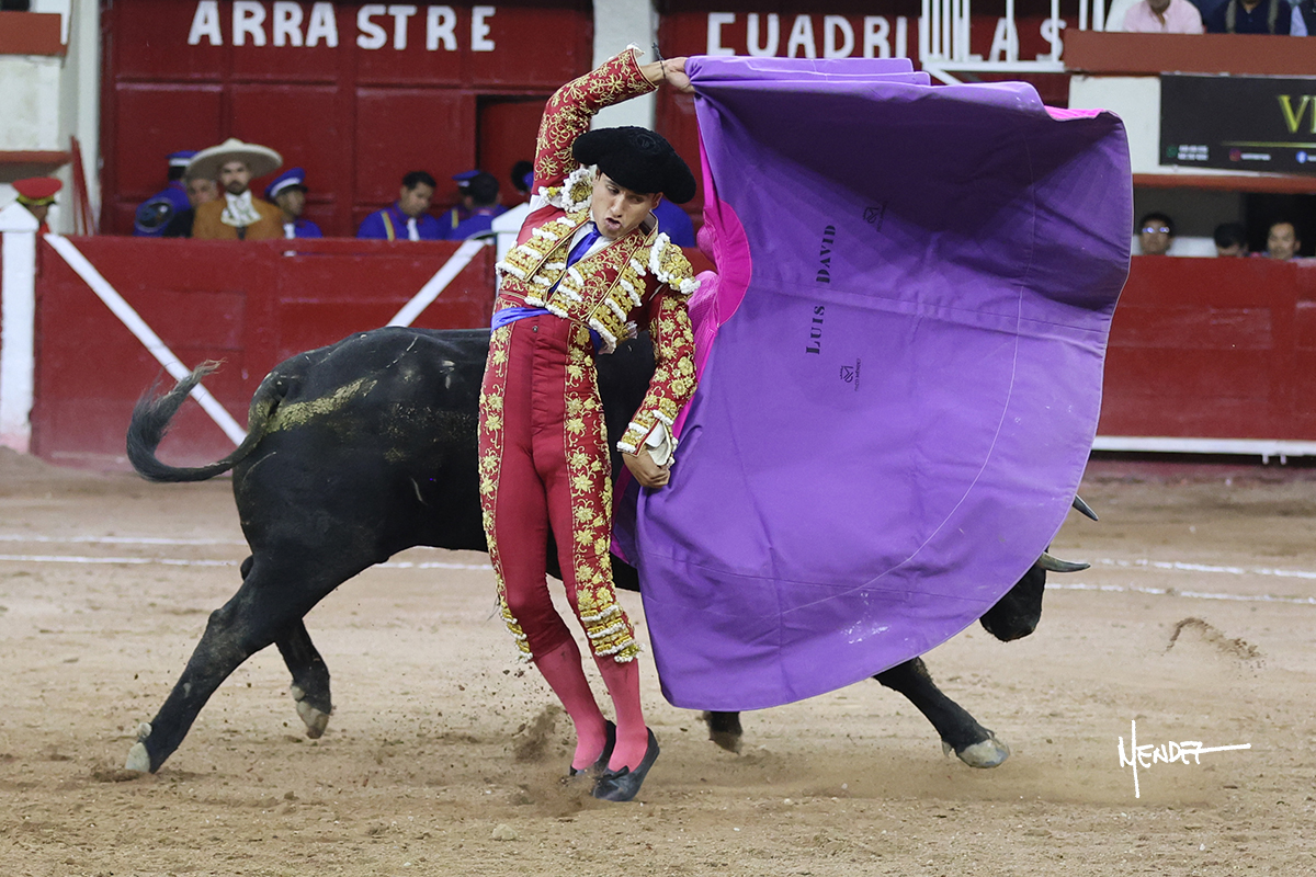 Un inspirado Luis David se lució en su saludo capotero al quinto. En el turno de quites Diego San Román se echó el capote a la espalda, ciñéndose al animal en exceso. Luis David replicó con variedad y emoción. El público demandaba que fuera el propio diestro quien pusiera las banderillas, así que tomó los palos y protagonizó el tercio. Se alcanzó la faena de muleta y la comenzó de rodillas, sin probaturas, toreando y aprovechando la inercia. Se lo llevó a los medios y se decidió por el pitón derecho, ayudándolo en las salidas, tratando de encontrarle la altura y las distancias. Le dio tiempo y manteniéndolo en los medios, siguió sobre el derecho de un toro que pasaba muy despacio, parándose y buscando a mitad del recorrido. Luis David acortó las distancias y le tocó con firmeza en la cara, en un tira y afloja constante por completar las tandas. Cambió al natural, haciéndolo pasar. Lo mantuvo en los medios durante toda la faena y en la suerte suprema, en el tercio, se tiró a matar con acierto.