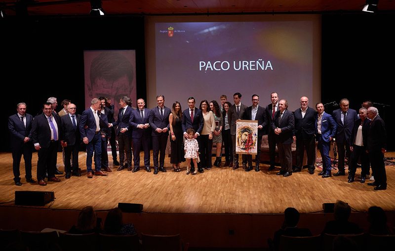 13 de febrero de 2026/Suertematador.com Las lágrimas cayeron por las mejillas durante toda la noche recordando en más de dos horas de gala la trayectoria de Paco Ureña, un torero que cumple y celebra esta temporada sus veinte años de alternativa. Una gala de envergadura en el Auditorio Víctor Villegas de Murcia con más de 500 aficionados y profesionales llegados de toda la Región y de vatios puntos de España y presidido por Marcos Ortuño, Consejero de Presidencia de la Región de Murcia y Francisco Abril, Director General de administración local de la Región. Junto a ellos innumerables cargos públicos representativos del Ayuntamiento de la Ciudad, del Ayuntamiento de Lorca y de otras instituciones. Acompañando a un emocionado Paco Ureña, junto a su