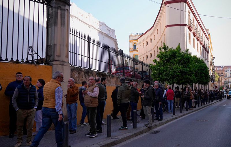25 de marzo de 2026/Suertematador.com La Real Maestranza de Caballería de Sevilla ha registrado largas colas en el primer día de venta de entradas sueltas para la temporada taurina 2026 de Lances de Futuro. A las 10 de la mañana se abrían las puertas de la plaza y desde la noche anterior, muchos aficionados aguardaban su turno desde la madrugada para poder adquirir sus localidades. La cola, que se extiende por el Paseo de Colón y la calle Antonia Díaz hasta llegar a la calle Adriano, refleja la gran expectación generada ante la primera temporada de la empresa Lances de Futuro al frente de la plaza de toros de la Maestranza. La gran demanda de entradas se refleja en muchos festejos de la